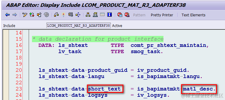 From line 23, keyword “shtext” and “short_text”, we can know the product descrption is modelled as set type in CRM product.