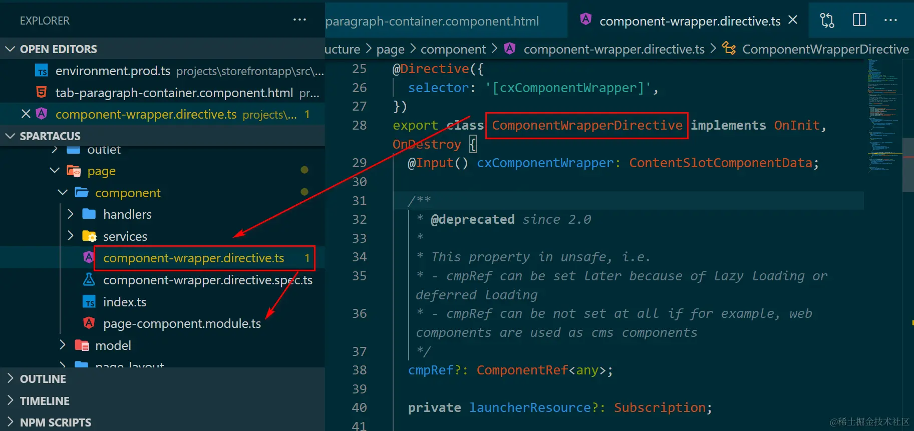 Here we can know cxComponentWrapper directive is exported via module : PageComponentDirective: