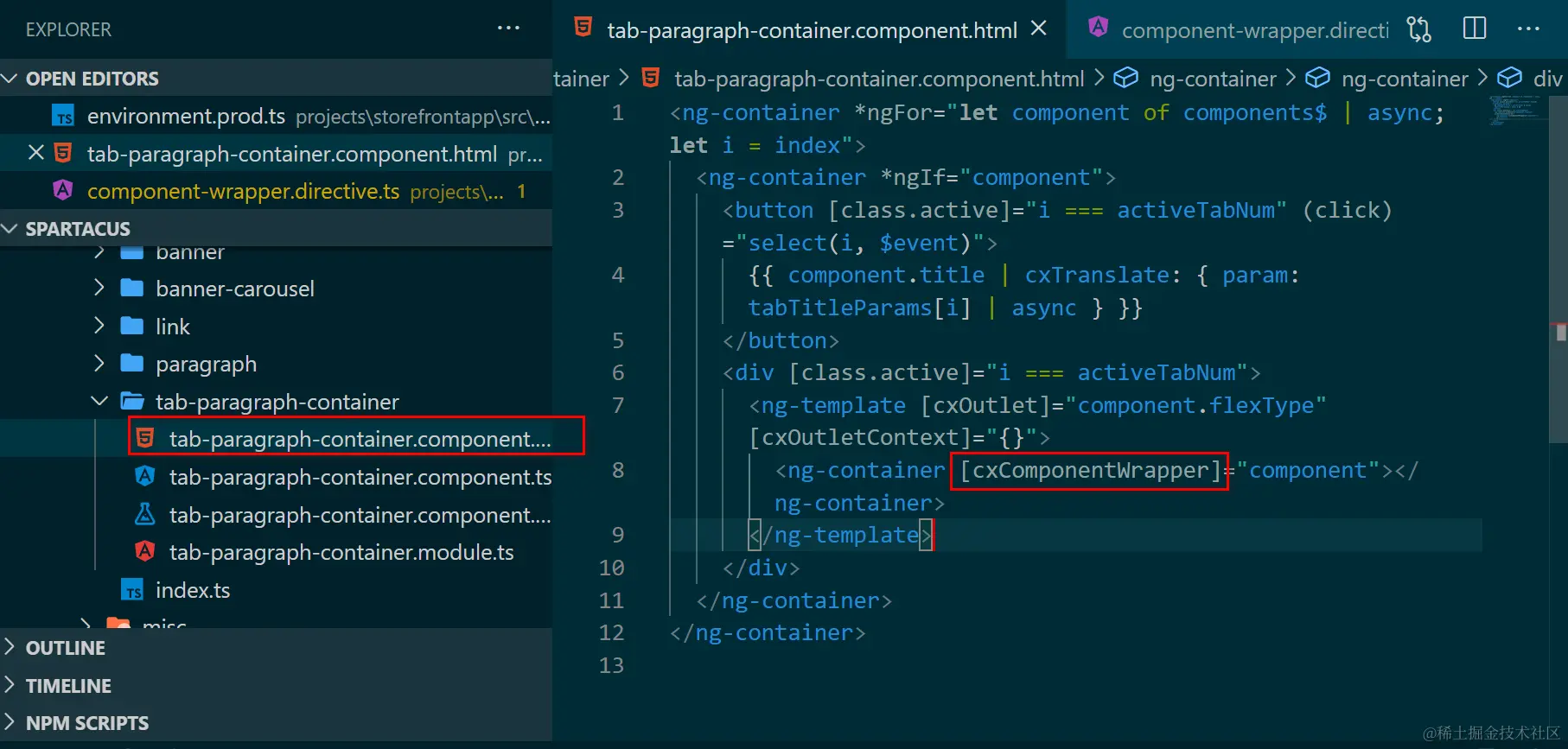 search source code by keyword “cxComponentWrapper”, there should be plenty of hits, for example tab-paragraph-container.component.html: