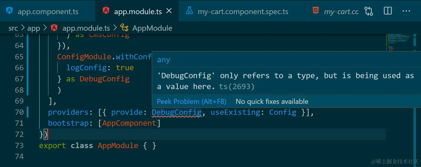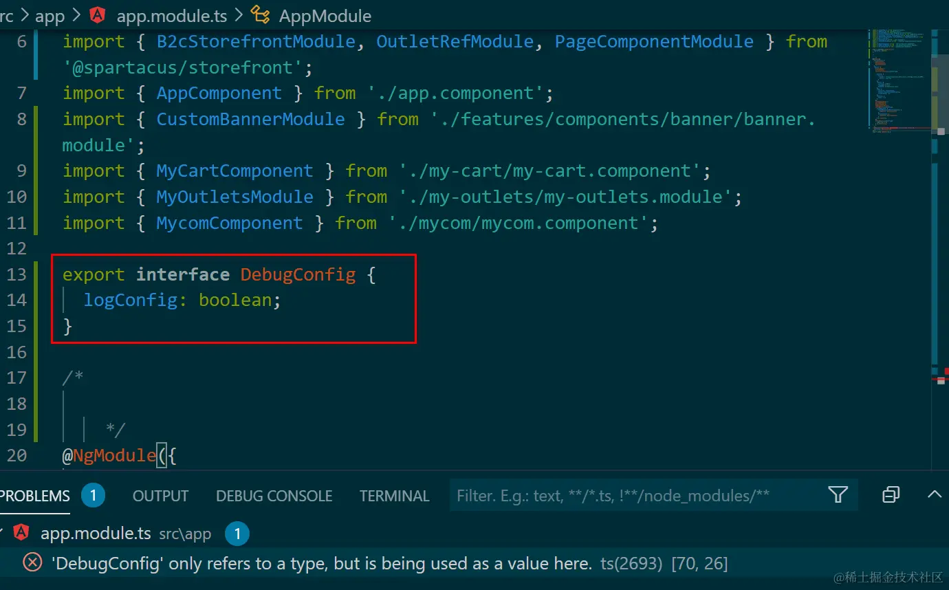 试图注入一个值,但实际上DebugConfig被定义成interface,只是一个类型: