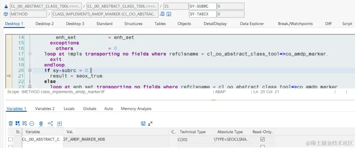 代码中提到的 cl_oo_abstract_class_tool=>co_amdp_marker 指向一个特定的接口,这可能是一个用于标记 AMDP(ABAP Managed Database Procedures)相关的类。AMDP 允许 ABAP 开发人员直接在 ABAP 类中编写 SQLScript,使得数据库操作更加高效。