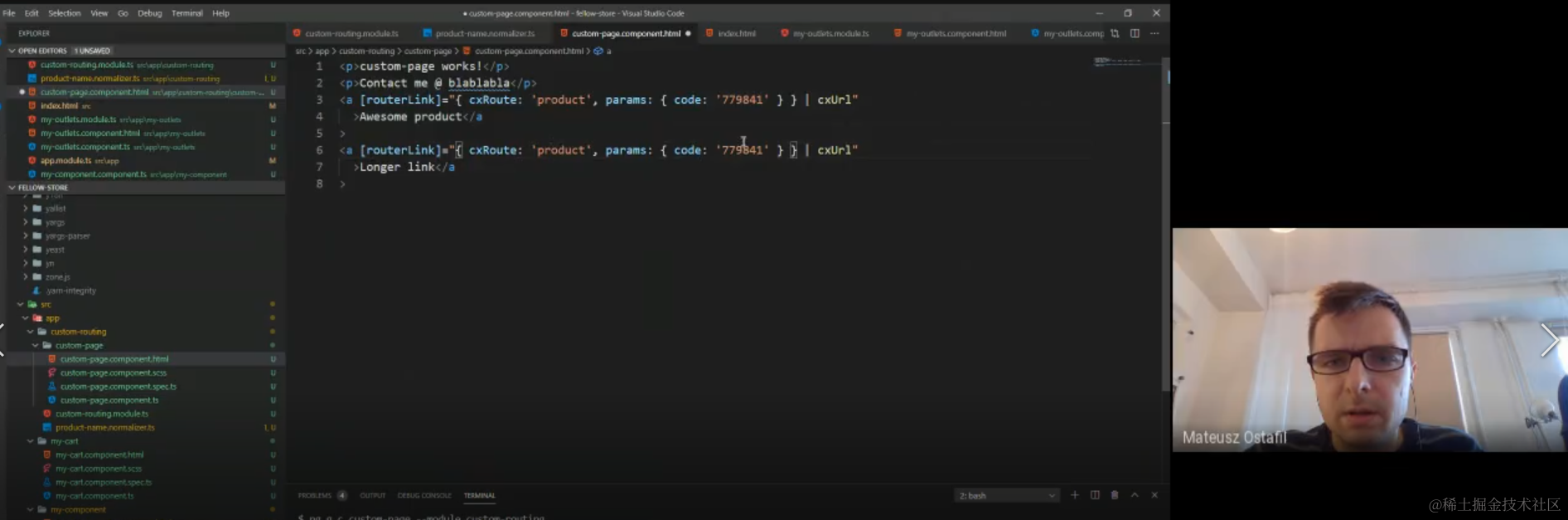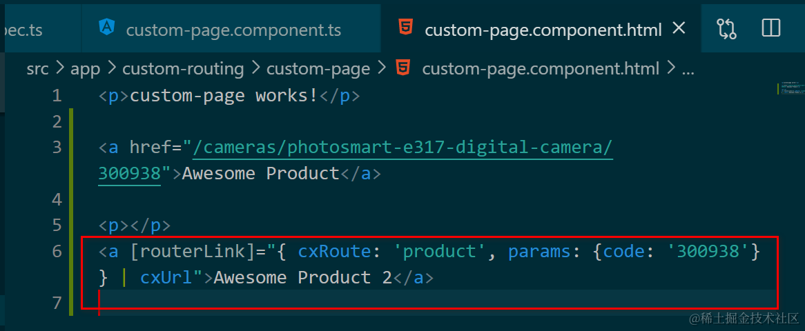 <a [routerLink]="{ cxRoute: 'product', params: {code: '300938'}} | cxUrl">Awesome Product 2</a>