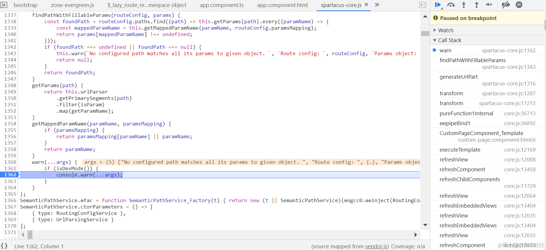 I observed in Chrome development tool, that every time I open url http://localhost:4200/electronics-spa/en/USD/custom, there is warning message reported in Chrome console: