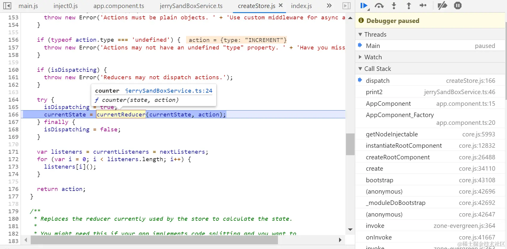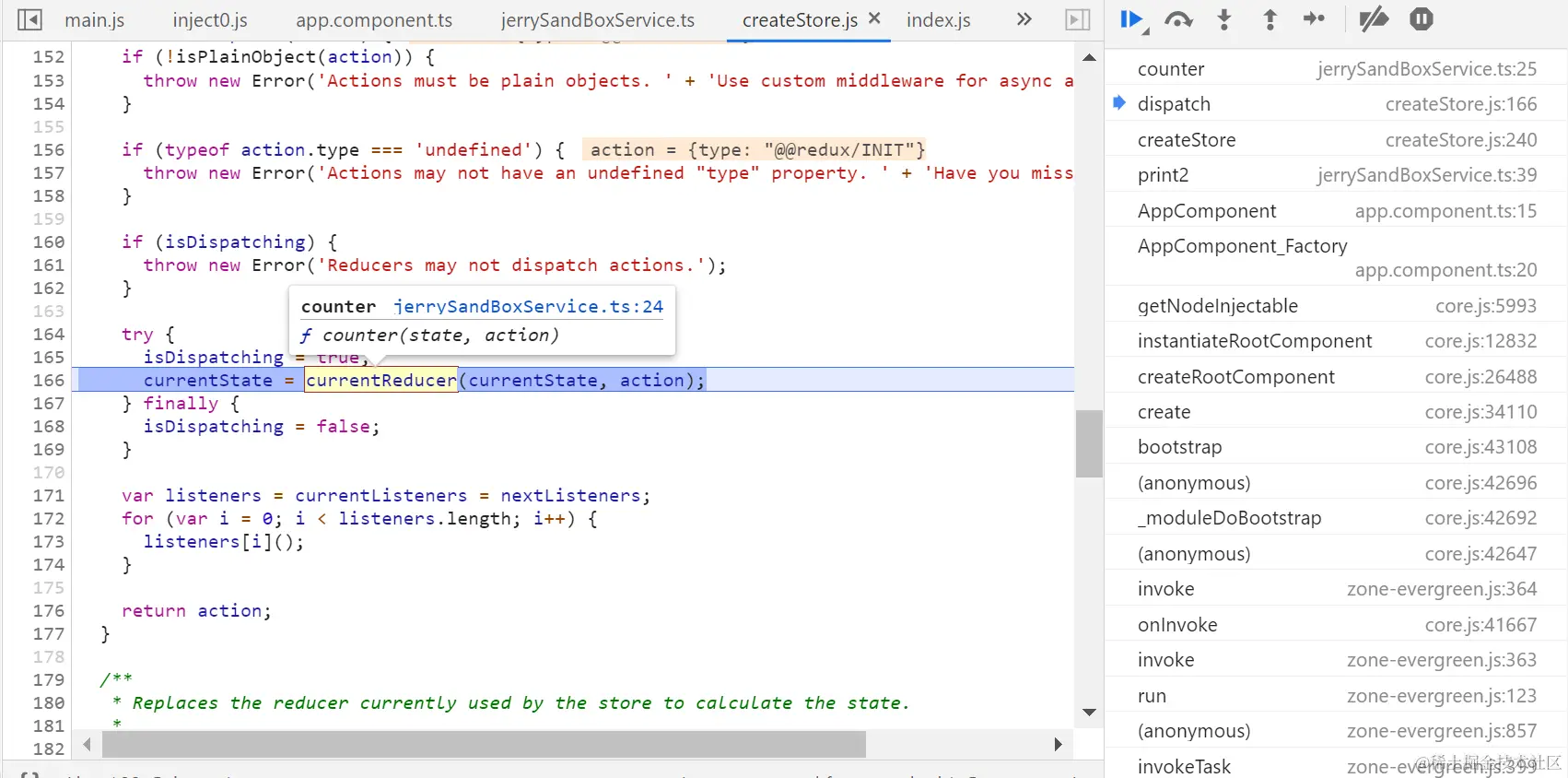 counter是一个JavaScript function,接收state和action两个输入参数,术语叫reducer: