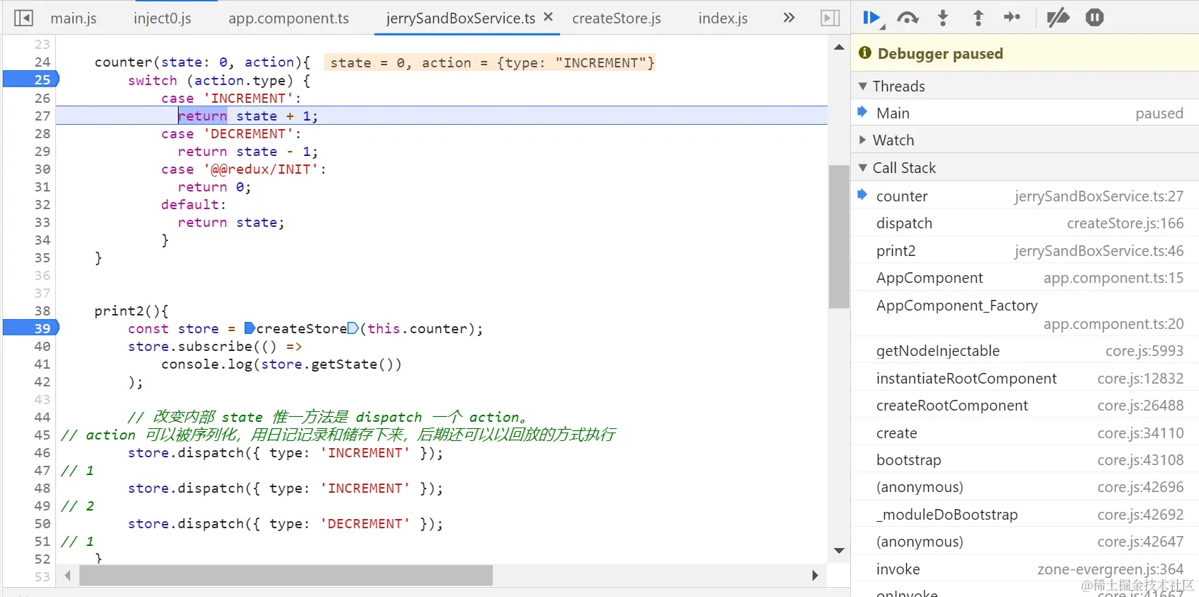 再次执行dispatch,改变state的值: