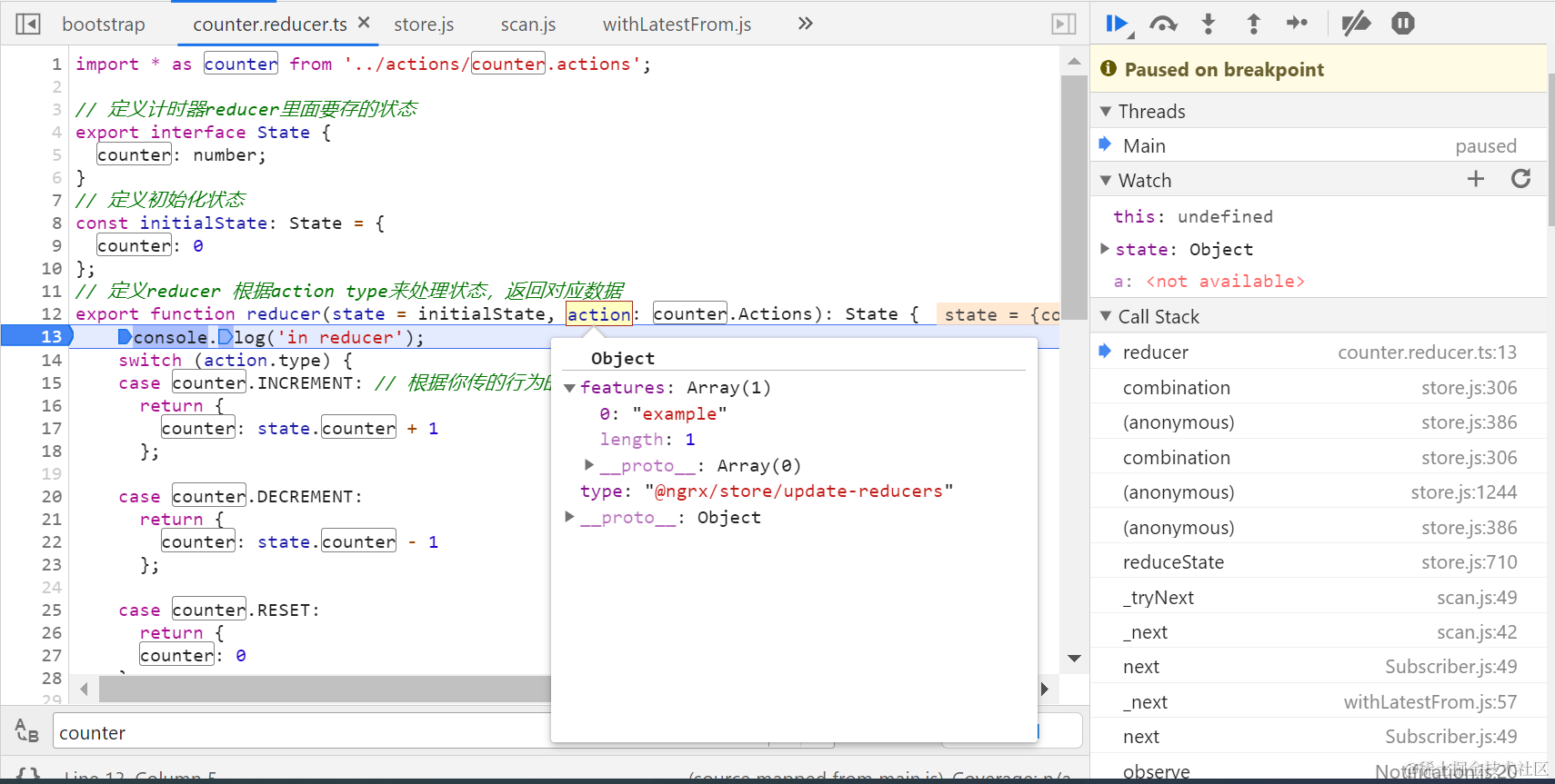reducer第一次被系统调用:@ngrx/store/update-reducers: