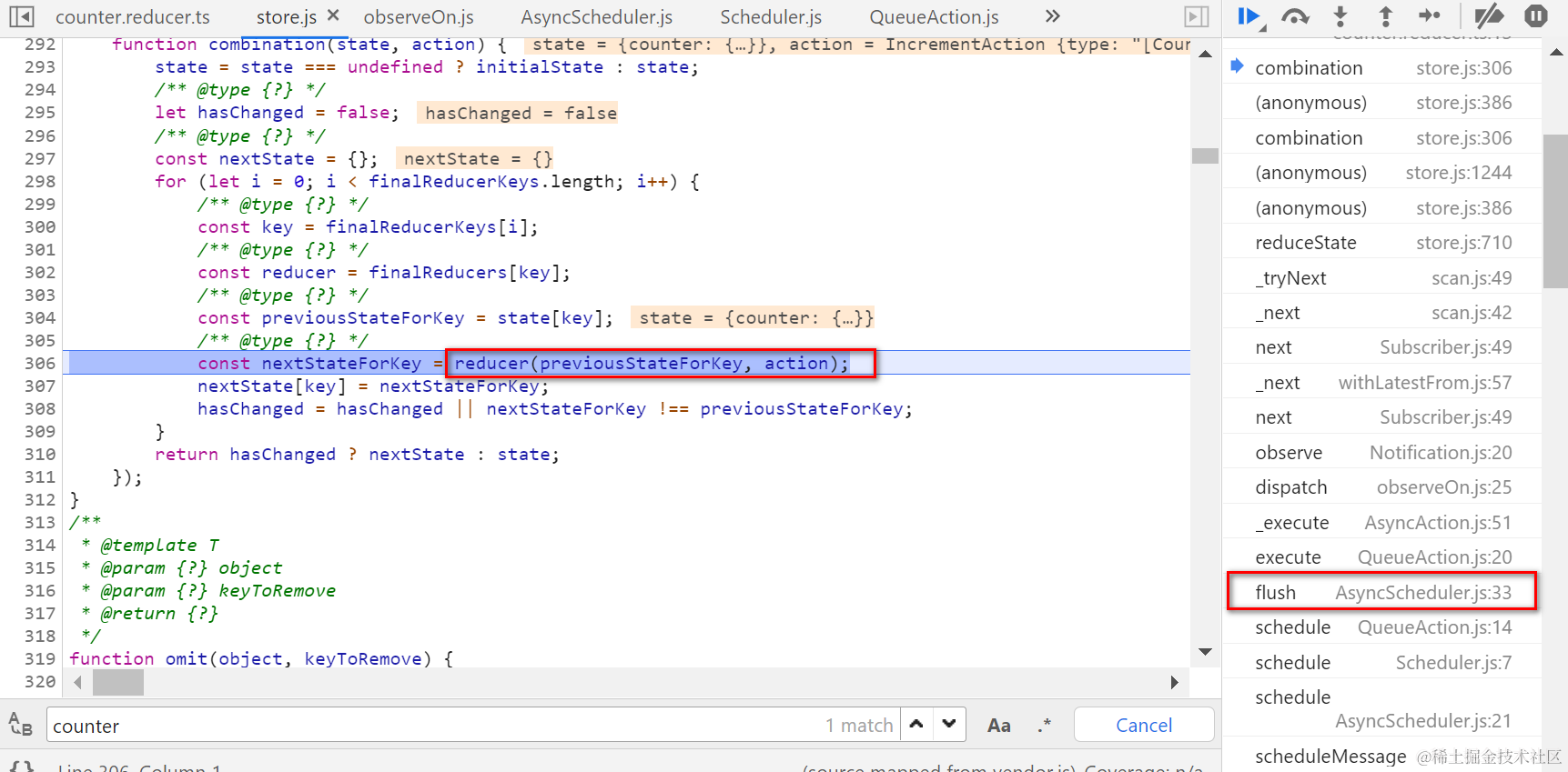 注意,一旦调用了flush方法之后,我们的reducer被回调: