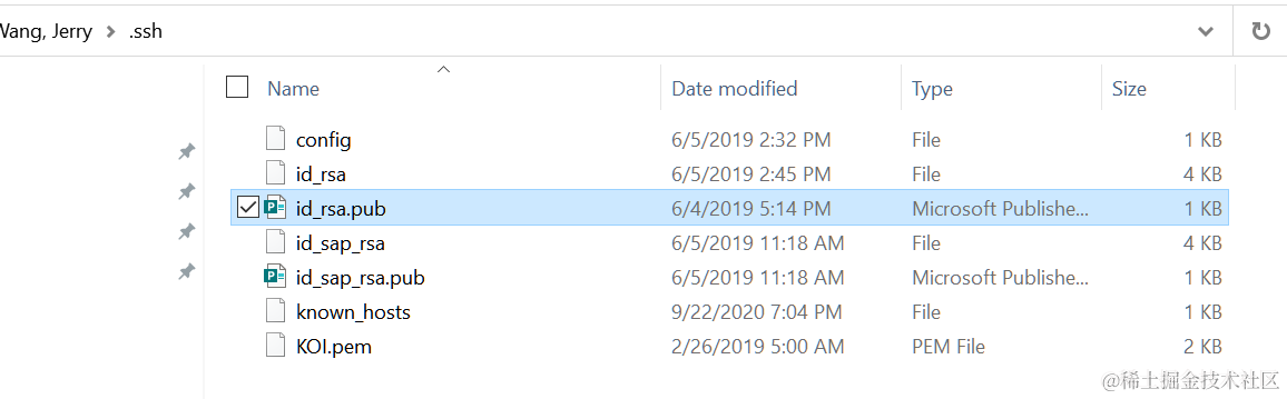用户文件夹.ssh下找到文件id_rsa.pub: