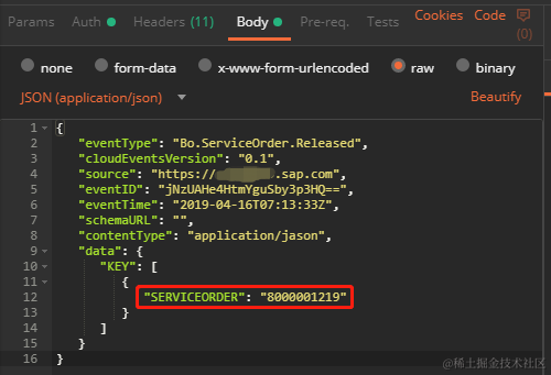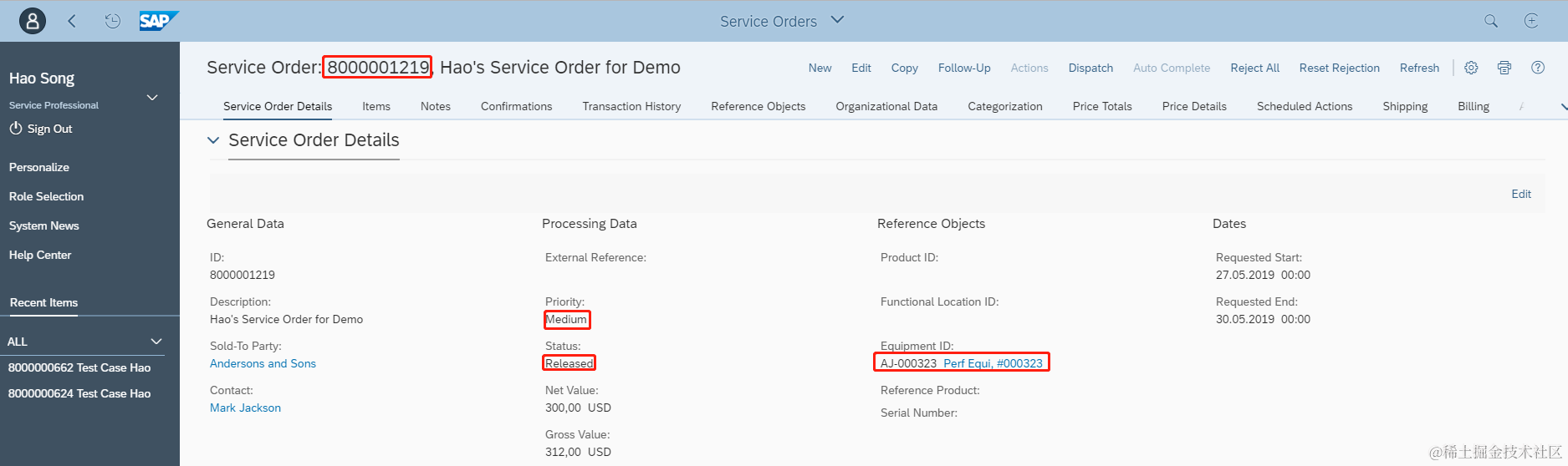 上述配置完成以后我们在S/4HANA端创建服务订单触发EMS发起Http请求调用Iflow。