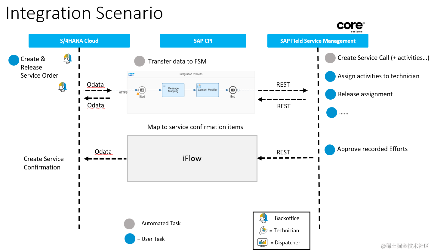 相信大家已经知道,2018年6月份,SAP收购了一家专注于Field Service Management的公司Coresystem。我们SAP自己的S/4CRM也有现场服务管理,所以我们为客户都提供了两个系统之间的集成解决方案,同时包含Cloud和On-Premise版本,完成业务流程与数据的同步。