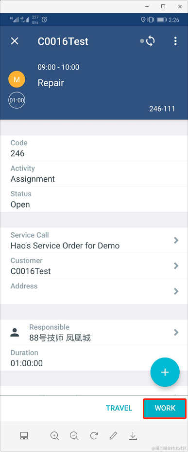 此时系统会根据之前的配置自动触发Iflow在FSM端创建服务呼叫。