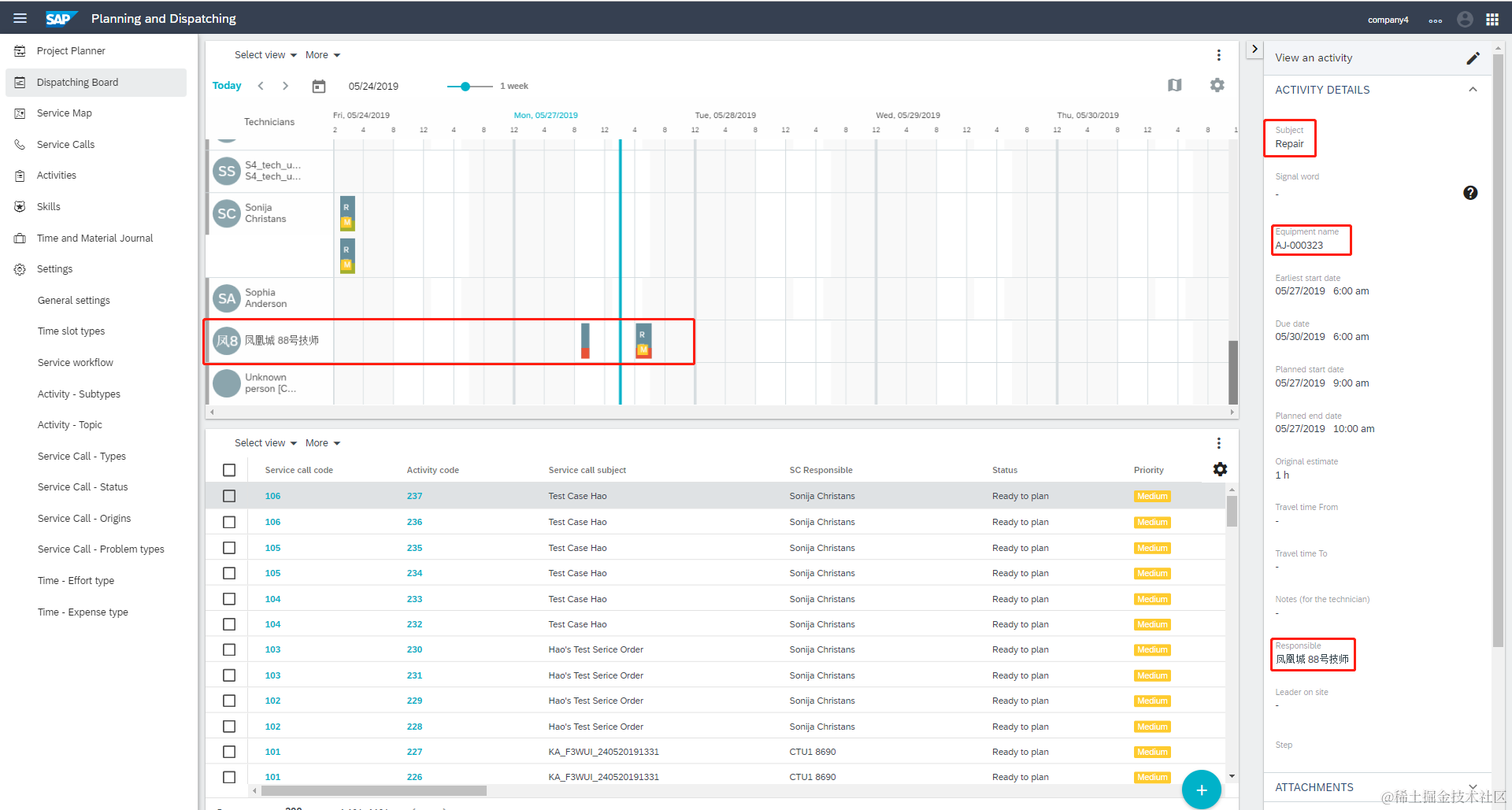 并且分配给对应的技师。同时FSM端会触发一个我们自己设计的Iflow将被分配到的技师信息更新回S/4HANA端对应的服务订单的服务产品行项目的Parties里。