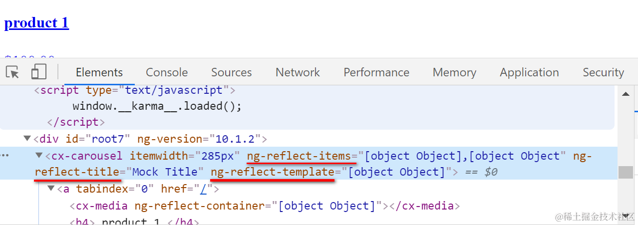 最后渲染出的html网页里,CarouselComponent这三个属性显示如下: