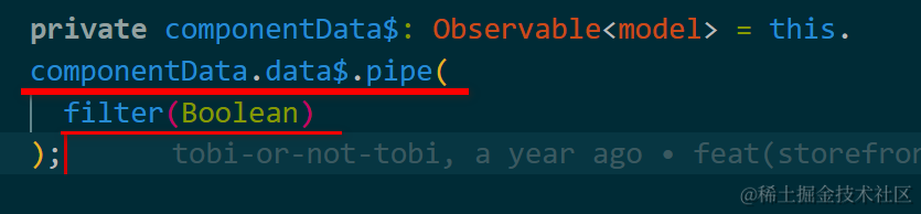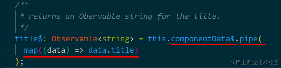 title 的 数 据 源 , c o m p o n e n t D a t a 的数据源,componentData 的数据源,componentData, 也是一个Observable,来自ComponentData.data$调用pipe执行filter操作后的结果: