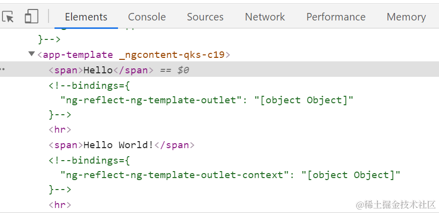 运行时,*ngTemplateOutlet="greet"处的代码被<ng-template #greet>指定的模板所取代: