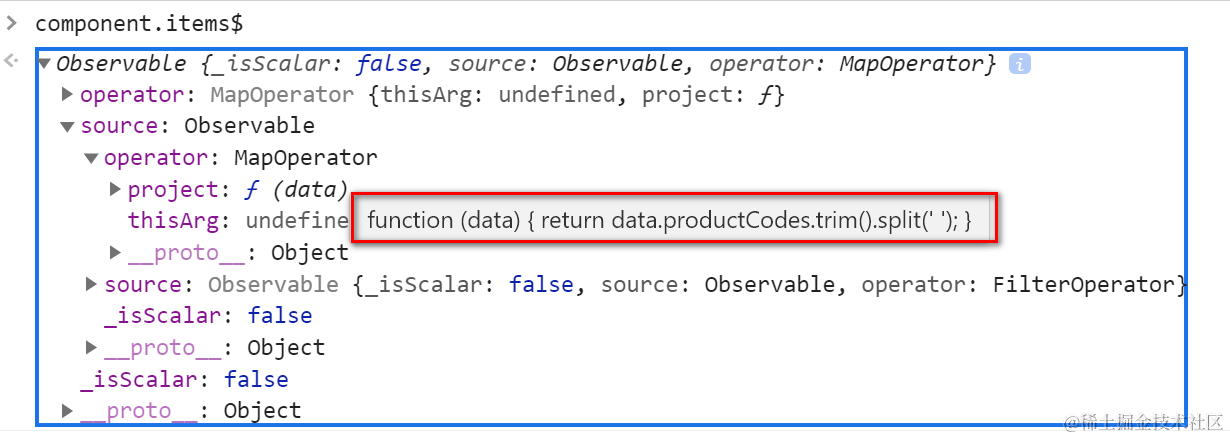 再往上,这个Observable没有operator,说明它没有被pipe处理过: