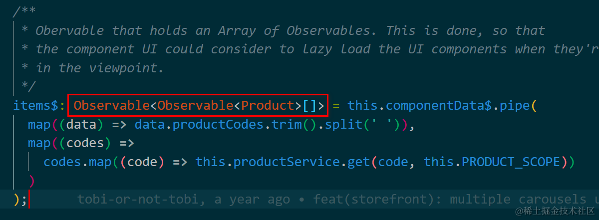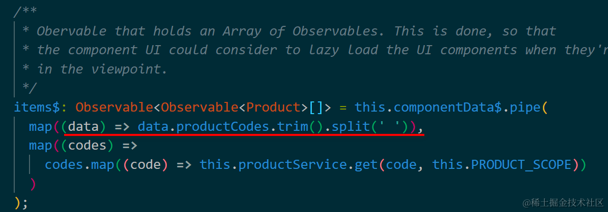 items$: Observable<Observable<Product>[]> = this.componentData$.pipe(