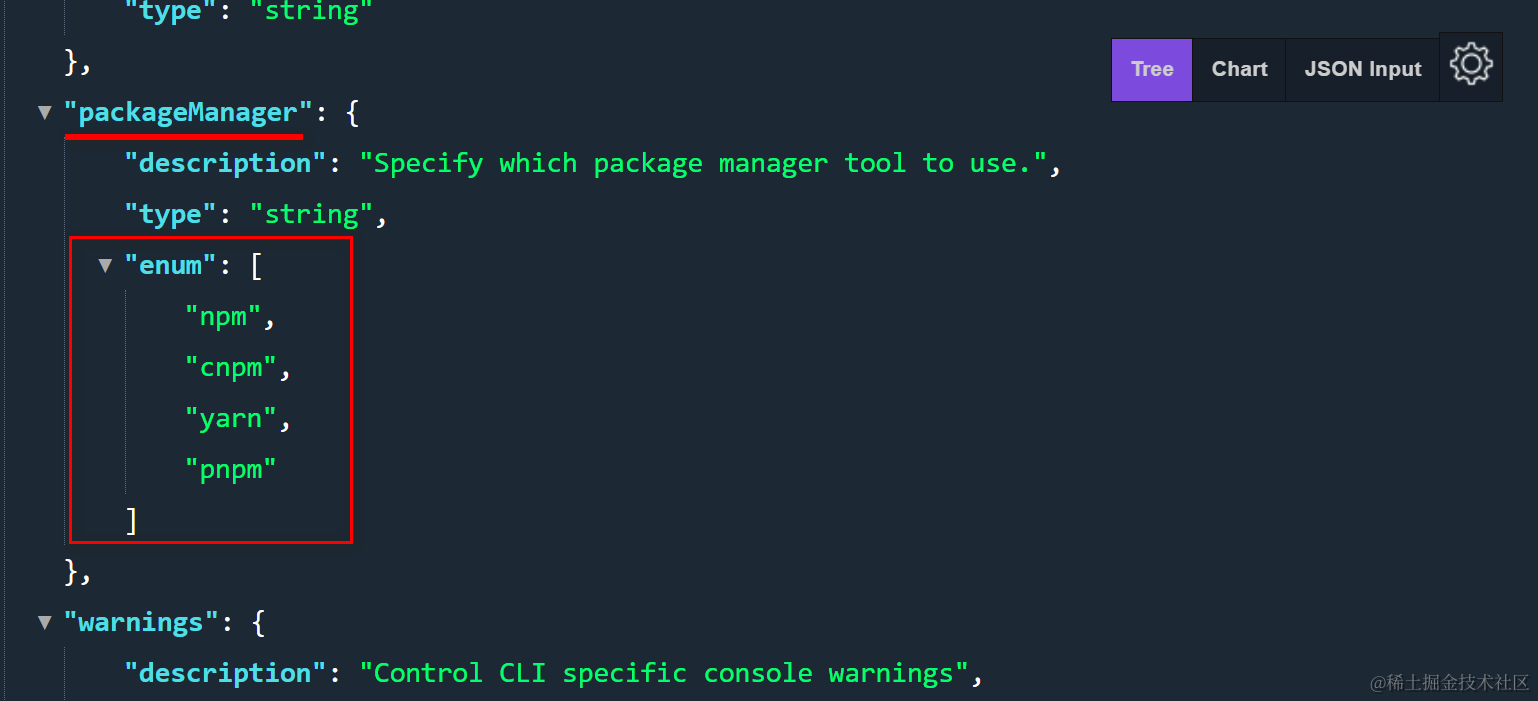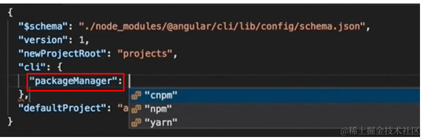 比如我们编辑angular.json文件时,有些字段比如cli.packageManager为什么可以出现自动完成的提示: