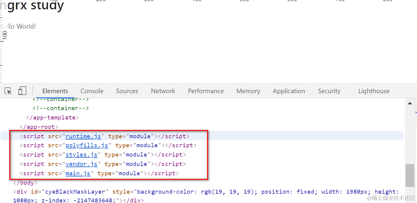 ng serve之后,打开的localhost里取回的html,里面多了很多script标签: