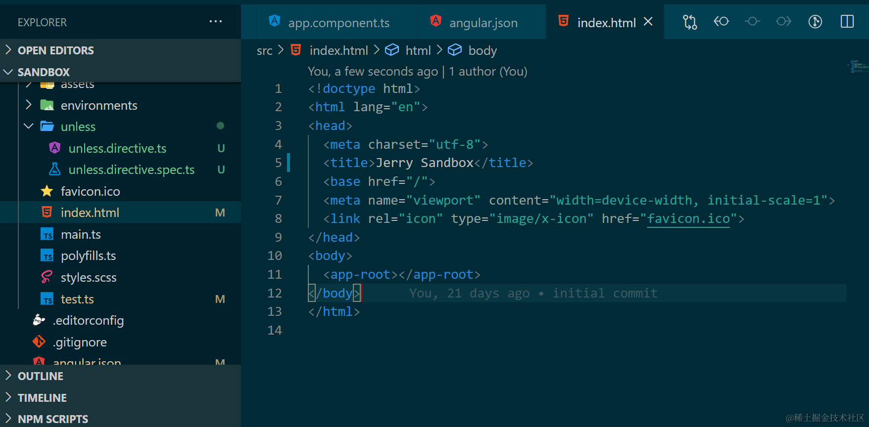 sandbox就是我的应用名称,也是Angular应用的根目录名称。