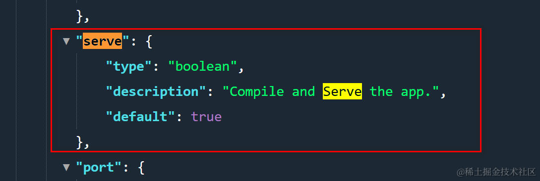 ng serve的含义也能在schema.json里查到:Compile and Serve the app.