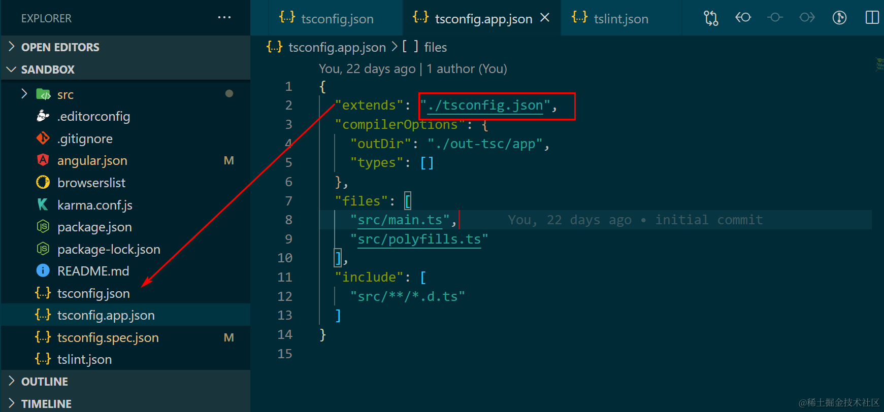 Angular应用里的tsconfig.app.json 已注销 2021-04-26 469 阅读1分钟 tsconfig.app.json是tsconfig.json的扩展: 在应用工程文件angular.json里的tsConfig字段处被引用: ng build后的输出: 2020年10月4日国庆节build出来的: 要获取更多Jerry的原创文章,请关注公众号"汪子熙":