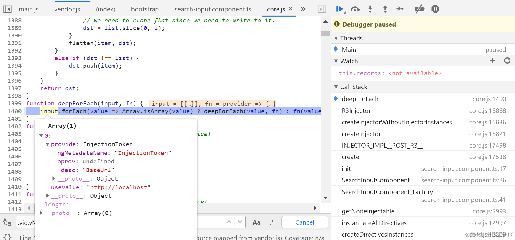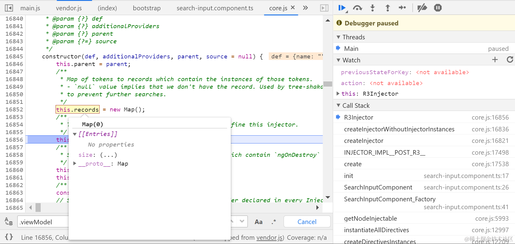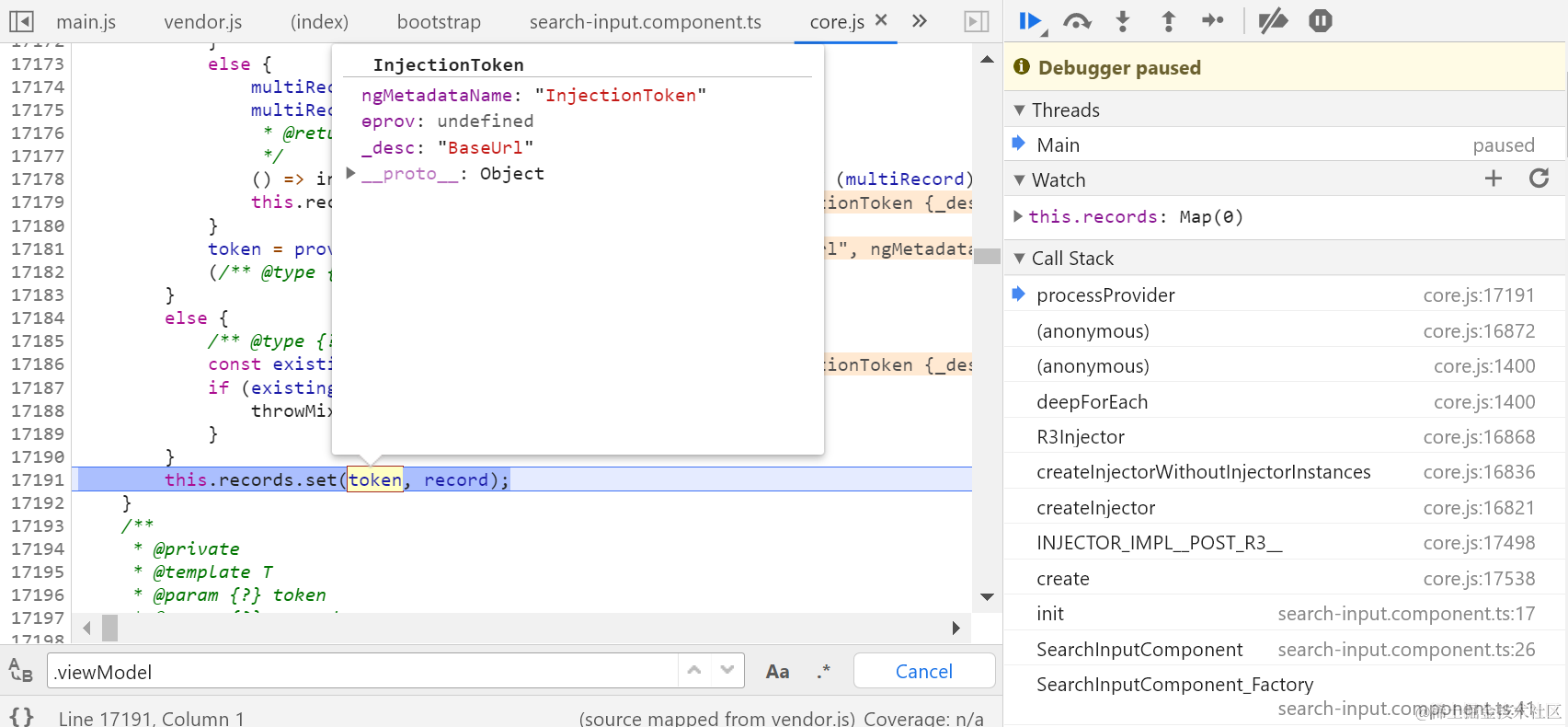 Angular Injection Token records map的填充原理 已注销 2021-04-26 89 阅读1分钟 injector刚刚创建的时候,records map是空的: 这里将创建injector时传入的provider填充到injector的records map里: 调用map的原生set方法插入键值对。key: value: 要获取更多Jerry的原创文章,请关注公众号"汪子熙":