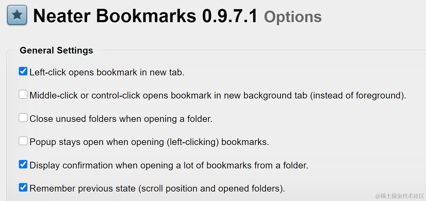 一个好用的Chrome扩展应用,Neater Bookmarks 已注销 2021-04-26 241 阅读1分钟 一些特色: 可以记住上次打开书签的状态: 自定义书签的图标: 外观如下: 要获取更多Jerry的原创文章,请关注公众号"汪子熙":