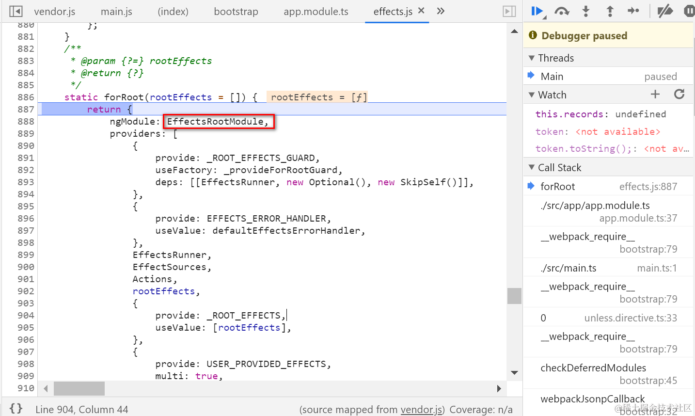 这个forRoot方法为EffectsRootModule提供了可用的provider: