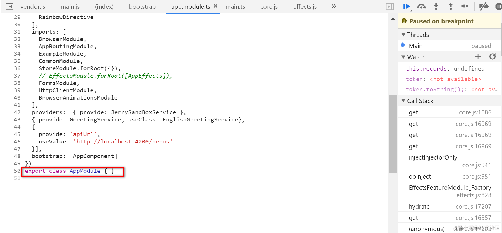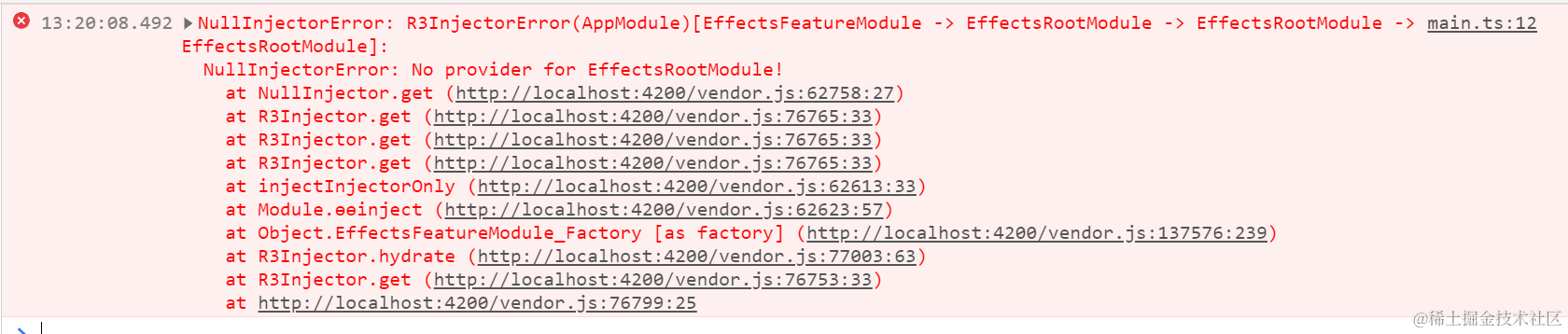 main.ts:12 NullInjectorError: R3InjectorError(AppModule)[EffectsFeatureModule -> EffectsRootModule -> EffectsRootModule -> EffectsRootModule]:
