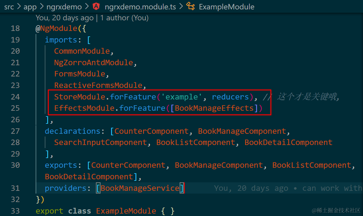 找到ExampleModule下的imports区域: