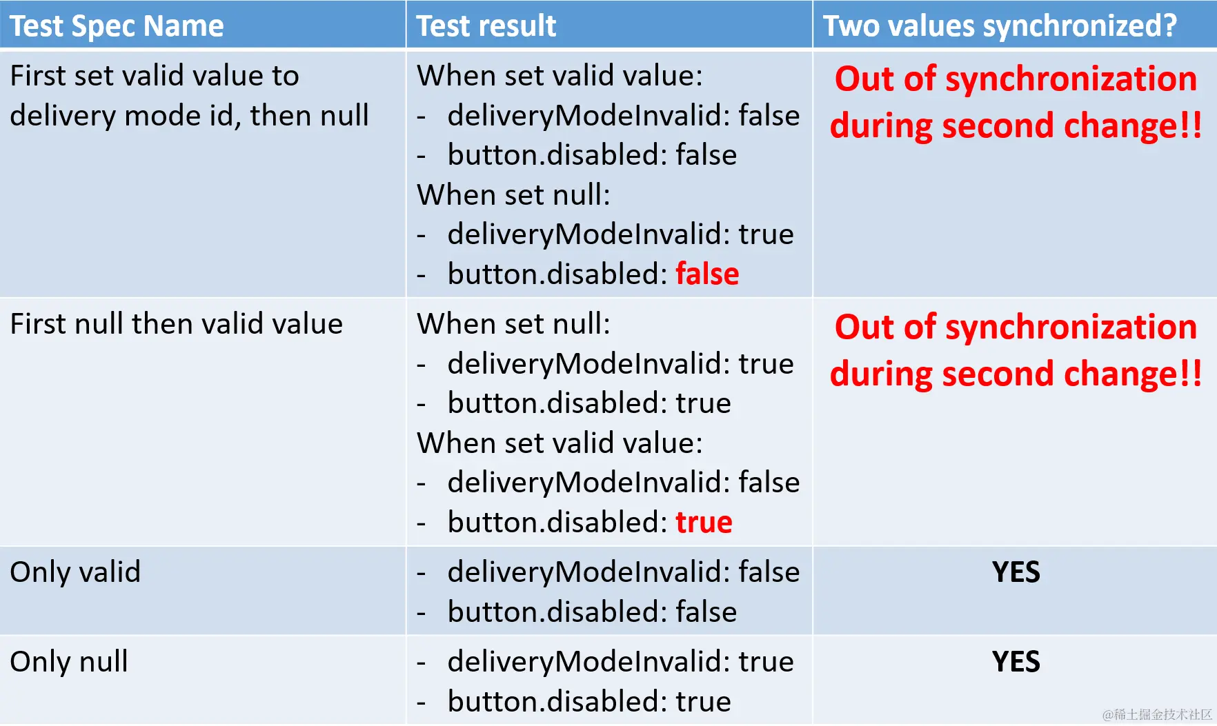 if we change the value of this.mode.controls[‘deliveryModeId’] TWICE in the same test spec, [disabled] and deliveryModeInvalid will LOSE synchronization, even fixture.detectChanges is called manually.