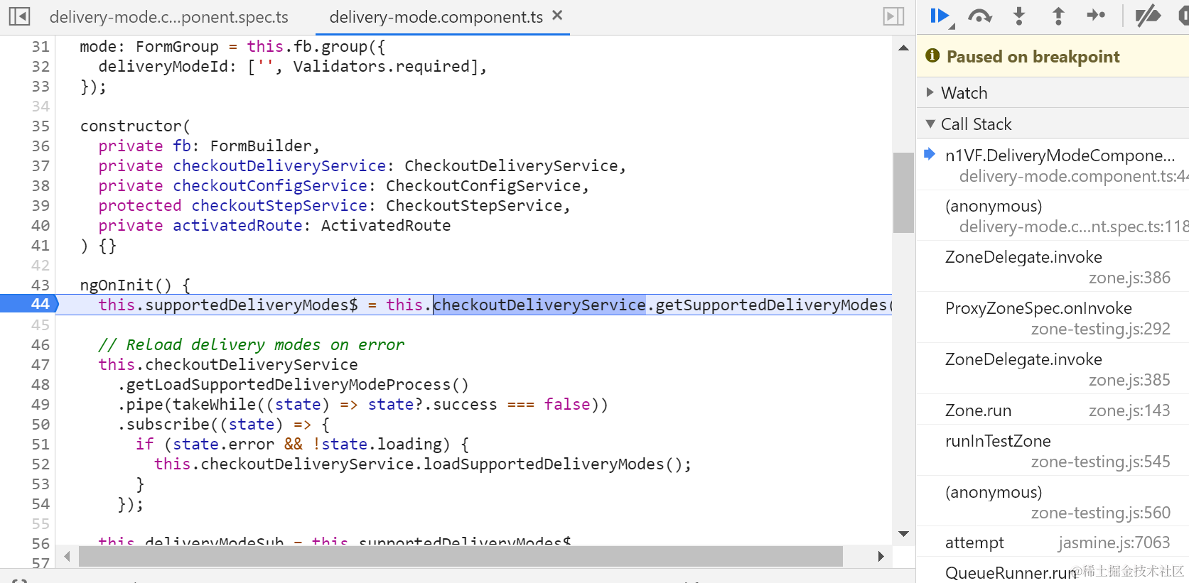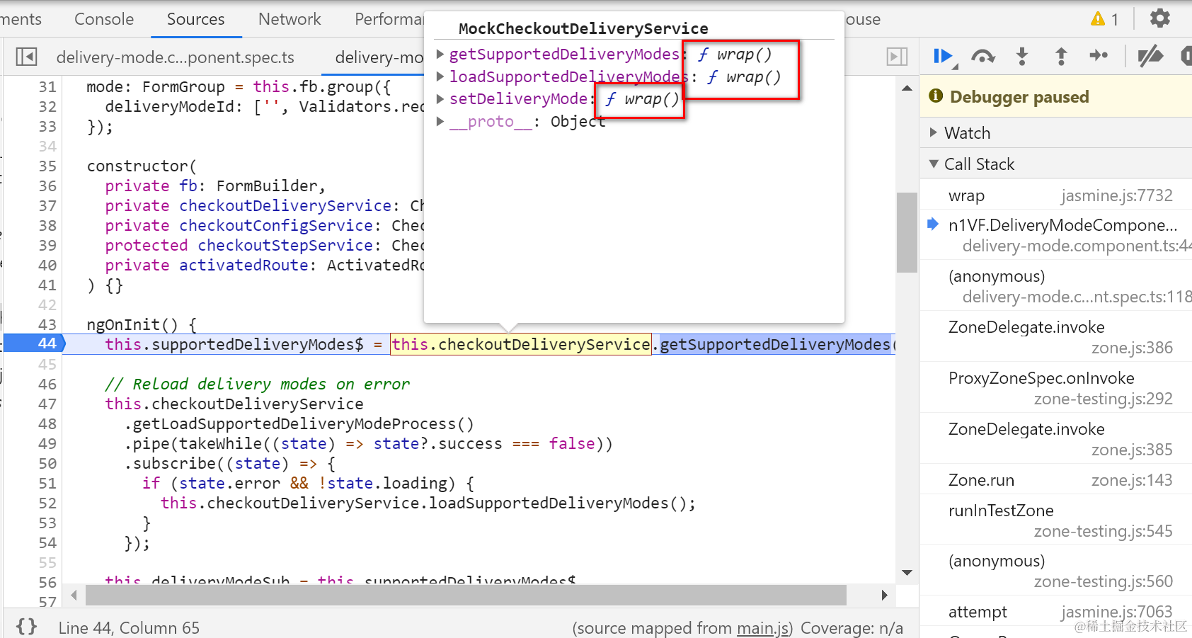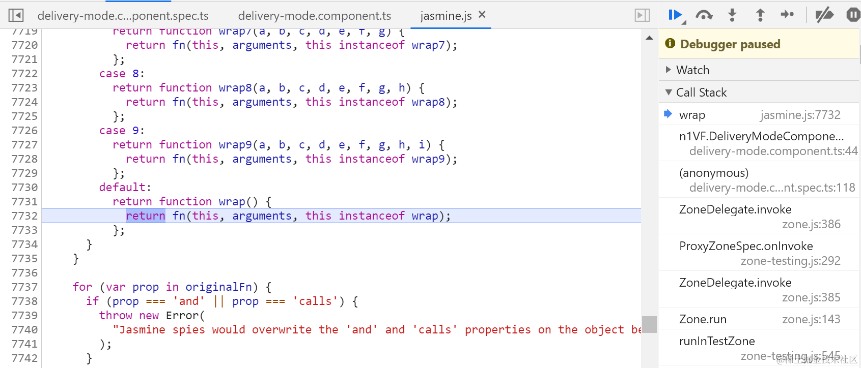 jasmine.spy对象的and.returnValue方法单步调试 已注销 2021-04-26 89 阅读1分钟 都已经是被spy之后的方法了: CallTracker.track就是把调用上下文放到一个calls数组里: delegate给strategy: 真正的执行体: 返回一个Observable对象: 最后拿到了mock data: 要获取更多Jerry的原创文章,请关注公众号"汪子熙":