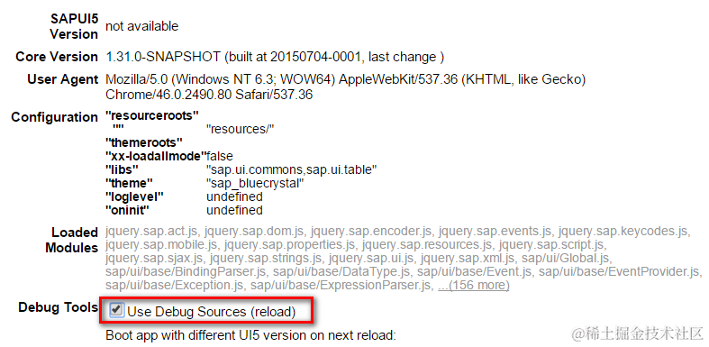 本系列针对SAP UI5框架的所有调试,都是基于源代码的Debug Sources版本的,即同时按住"Shift+Alt+Ctrl+P", 在弹出框里勾上"Use Debug Sources", 重新刷新应用以加载Debug Sources.
