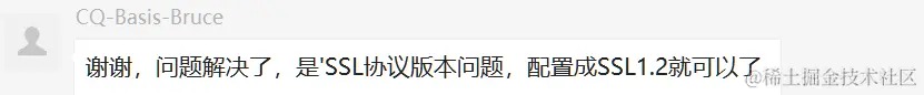 最后这位Bruce朋友自己解决了该问题:是’SSL协议版本问题,配置成SSL1.2就可以了
