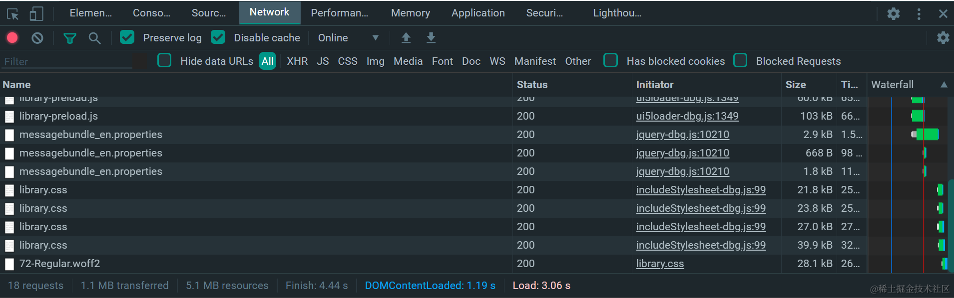 DOM content loaded 1.19s:当纯HTML被完全加载以及解析时,DOMContentLoaded 事件会被触发,而不必等待样式表,图片或者子框架完成加载。