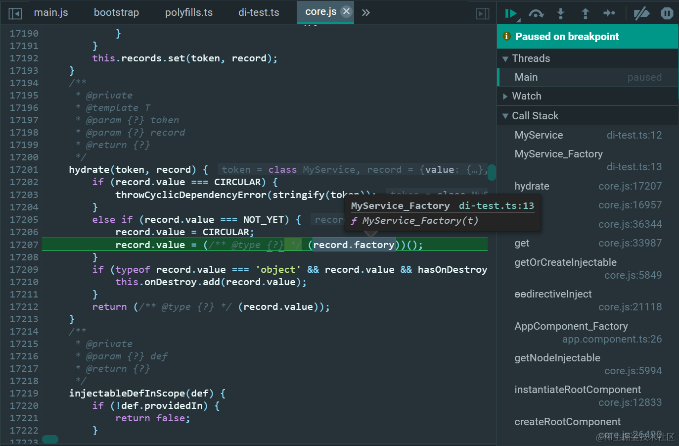 根据token(MyService)拿到factory(MyNewService_Factory):