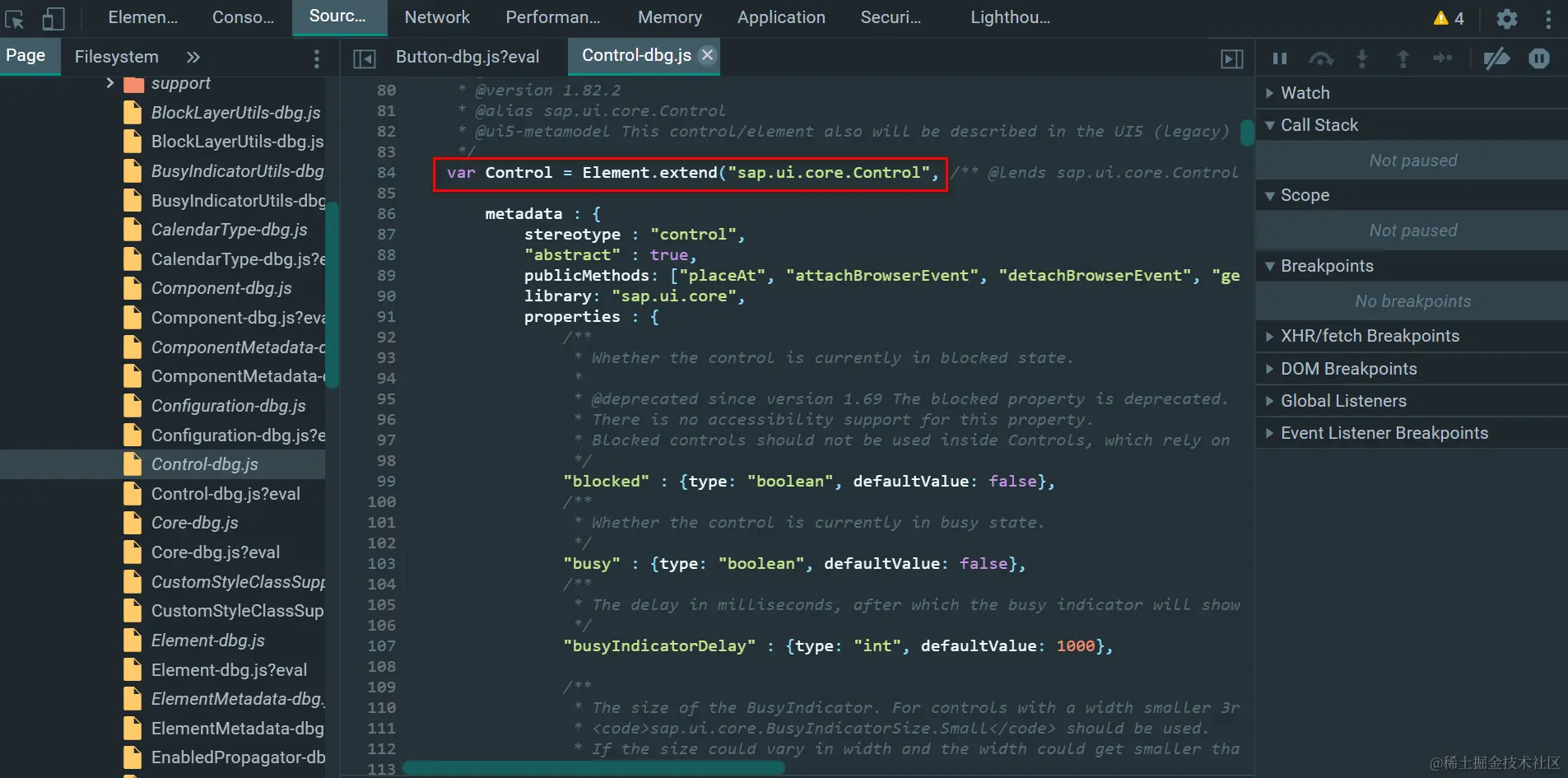 - Line 16517: 根据全局标志位window.sap-ui-loaddbg的值决定加载Button Module的普通版本还是调试版本。