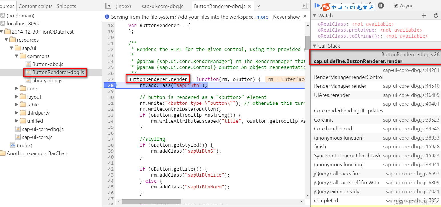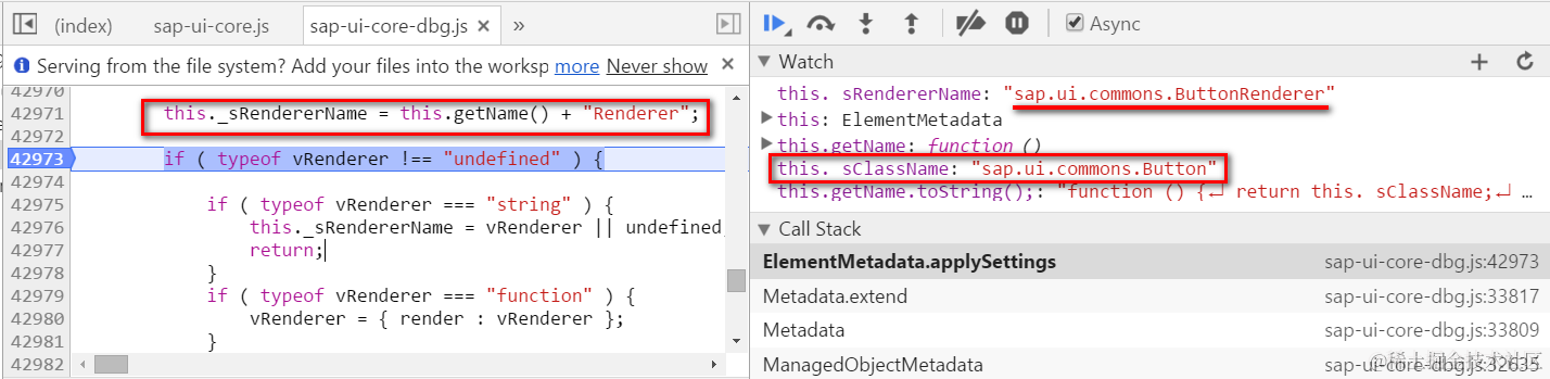 从调试器里能观察到button控件元数据里,变量_sRendererName维护了button渲染器的名称:sap.ui.commons.ButtonRenderer. 然而,这个变量在何时赋的值?