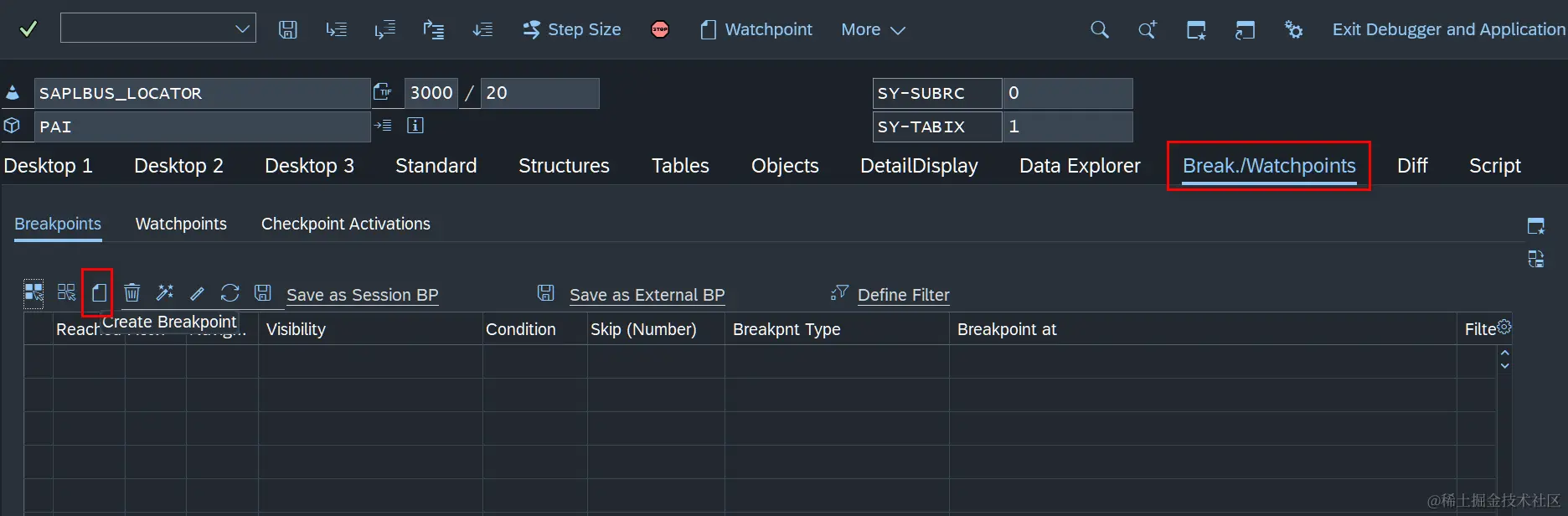 这种方式需要先以调试模式运行想要寻找增强的应用,在调试器的Break/Watchpoints里新建一个动态断点: