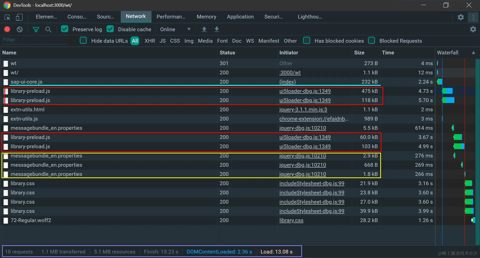 有中文博客介绍说transferred over network是通过网络加载的资源尺寸,而resources loaded by the page不仅包含前者,也包含直接从浏览器缓存里加载的资源尺寸。这种说法不完全准确,更精确的说法是,resources loaded by the page统计的是前端页面加载的所有资源经过解压之后的原始大小。