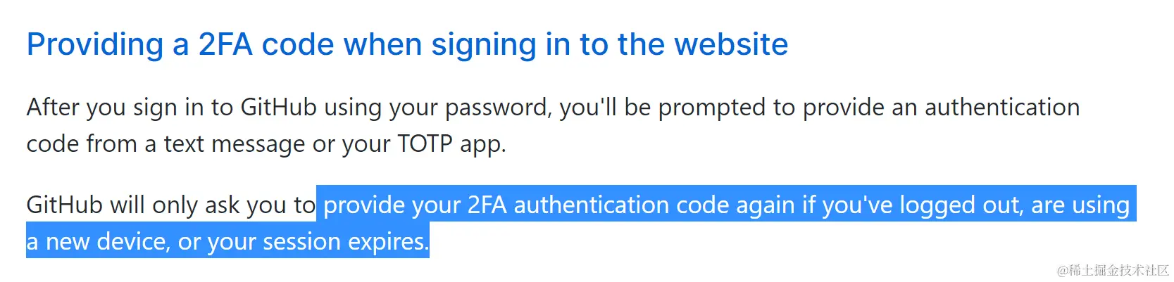 根据Github的帮助文档,第一次凭借用户名+明码+2FA Authentication code成功登录之后,以后每次再登陆无需这个code了,除非用户注销,更新了新的移动设备或者session过期。