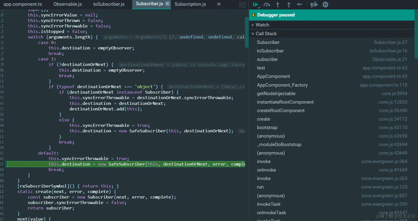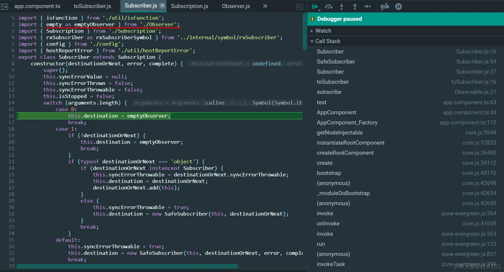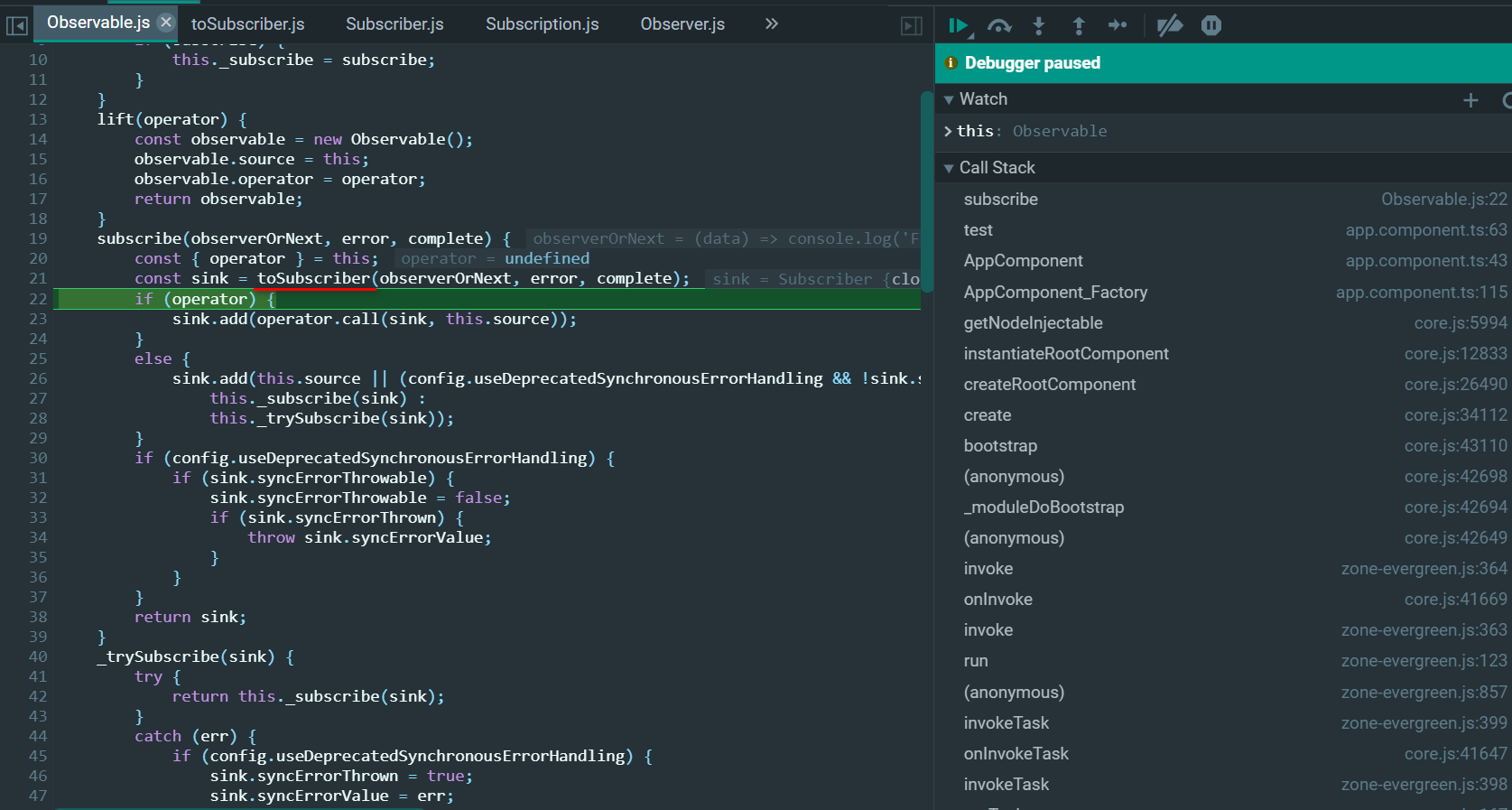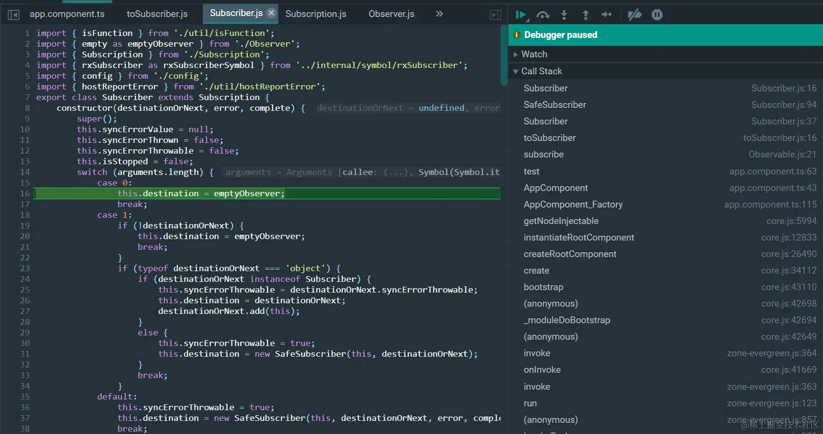 ObserverOrNext就是上图第63行的箭头函数,error和complete为undefined: