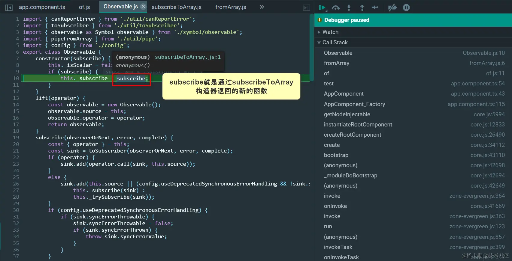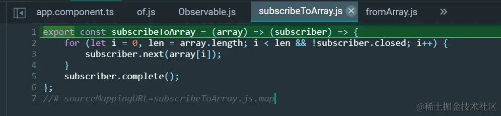 这个subscribeToArray是一个函数构造器,接收一个数组,返回一个新的函数: