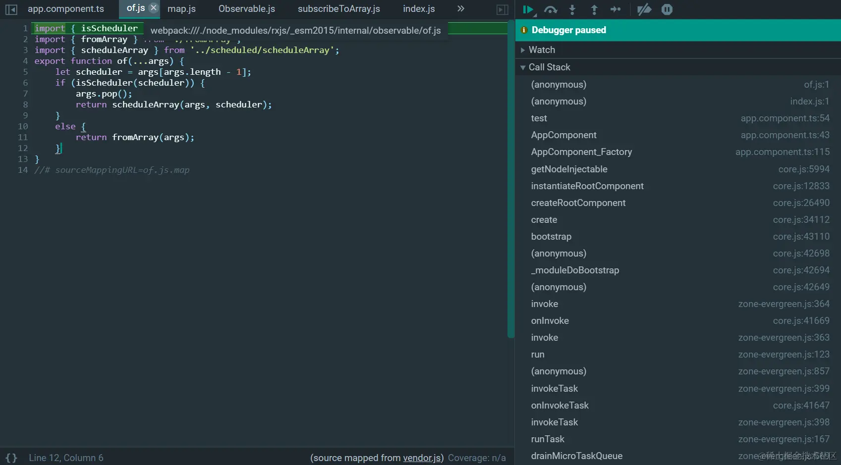 单步调试,首先执行of所在的index.ts: