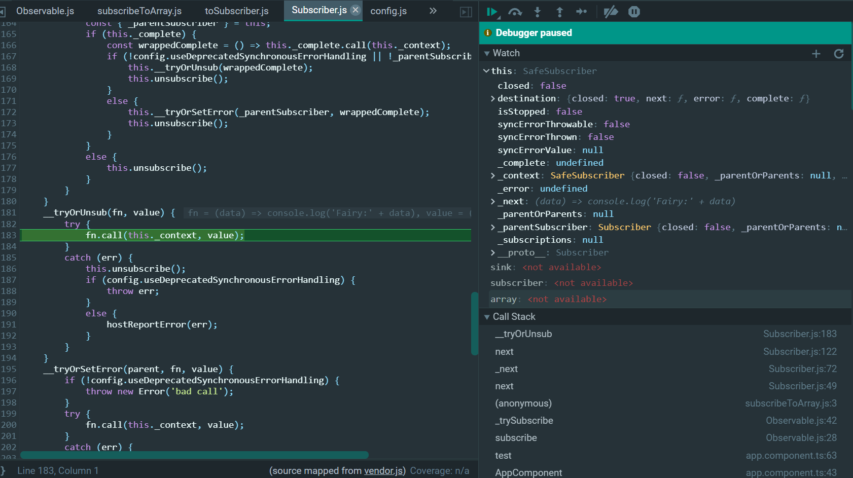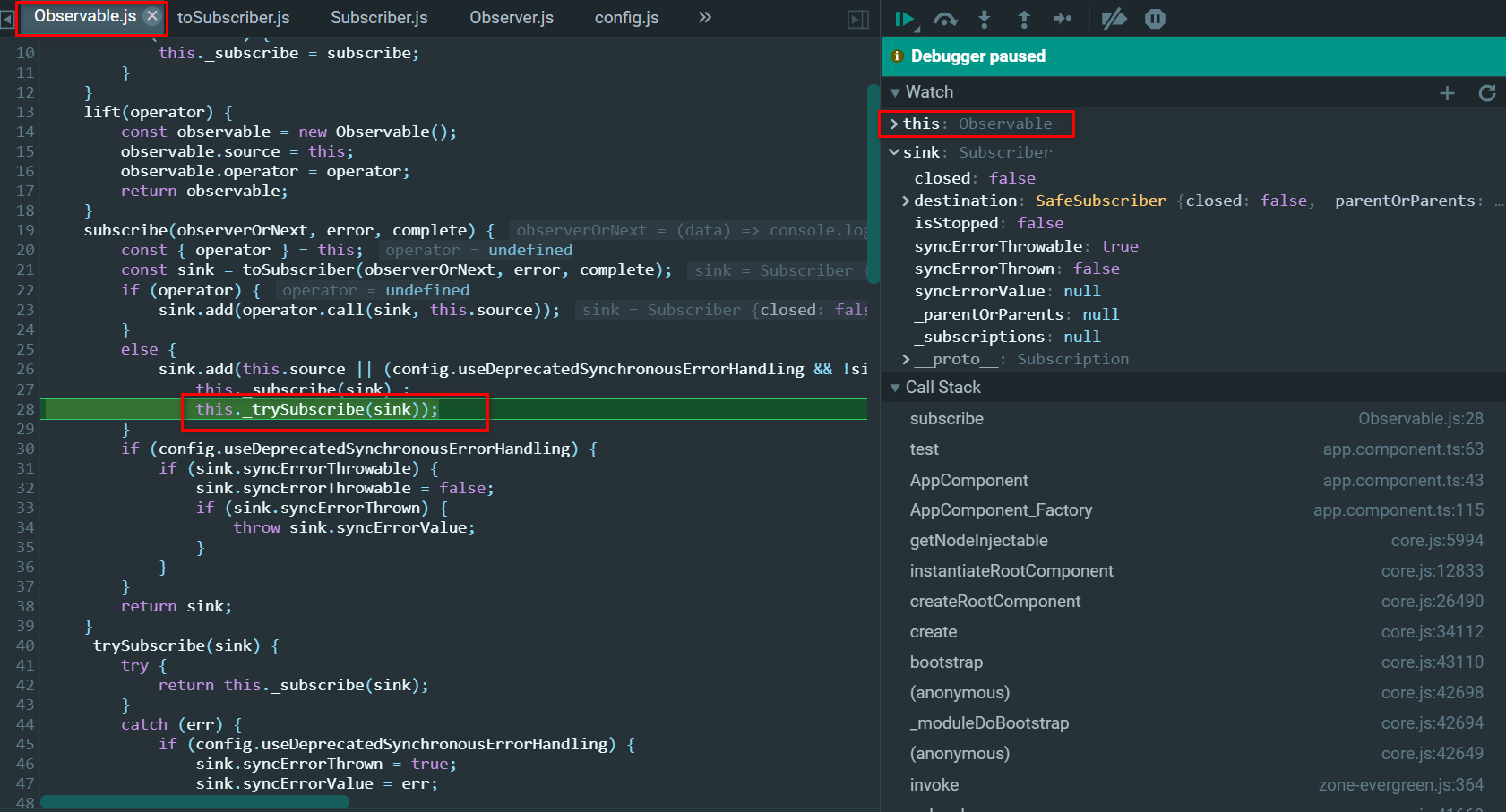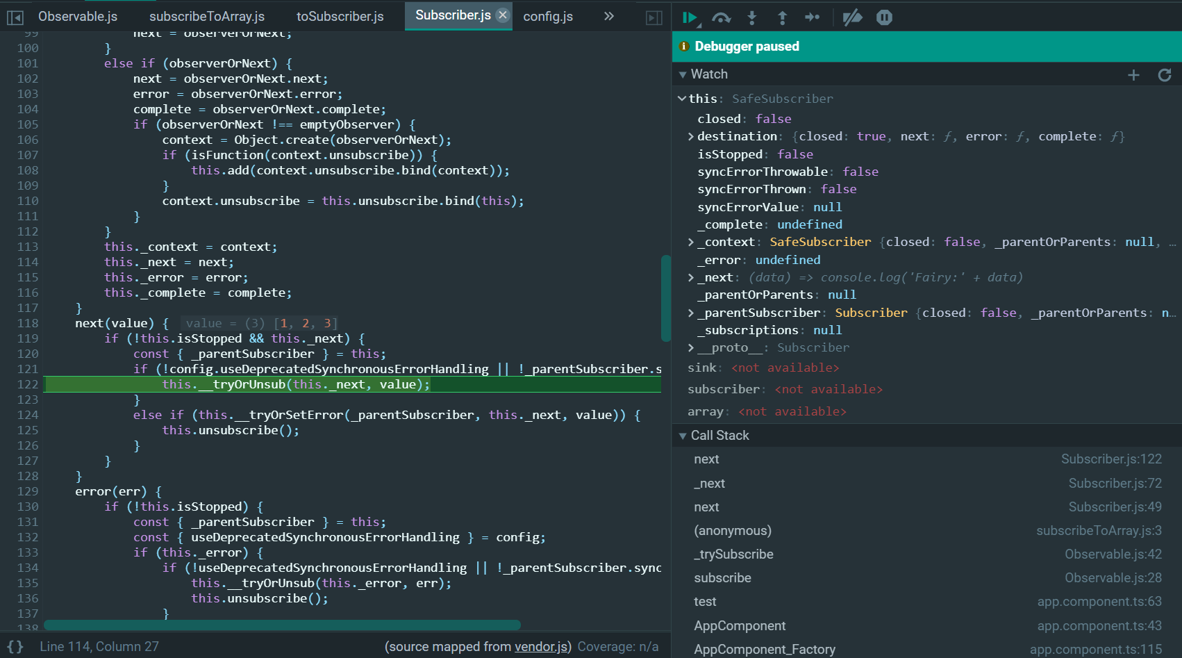 subscriber的_tryOrUnsub函数里,最终调用应用程序的callback: