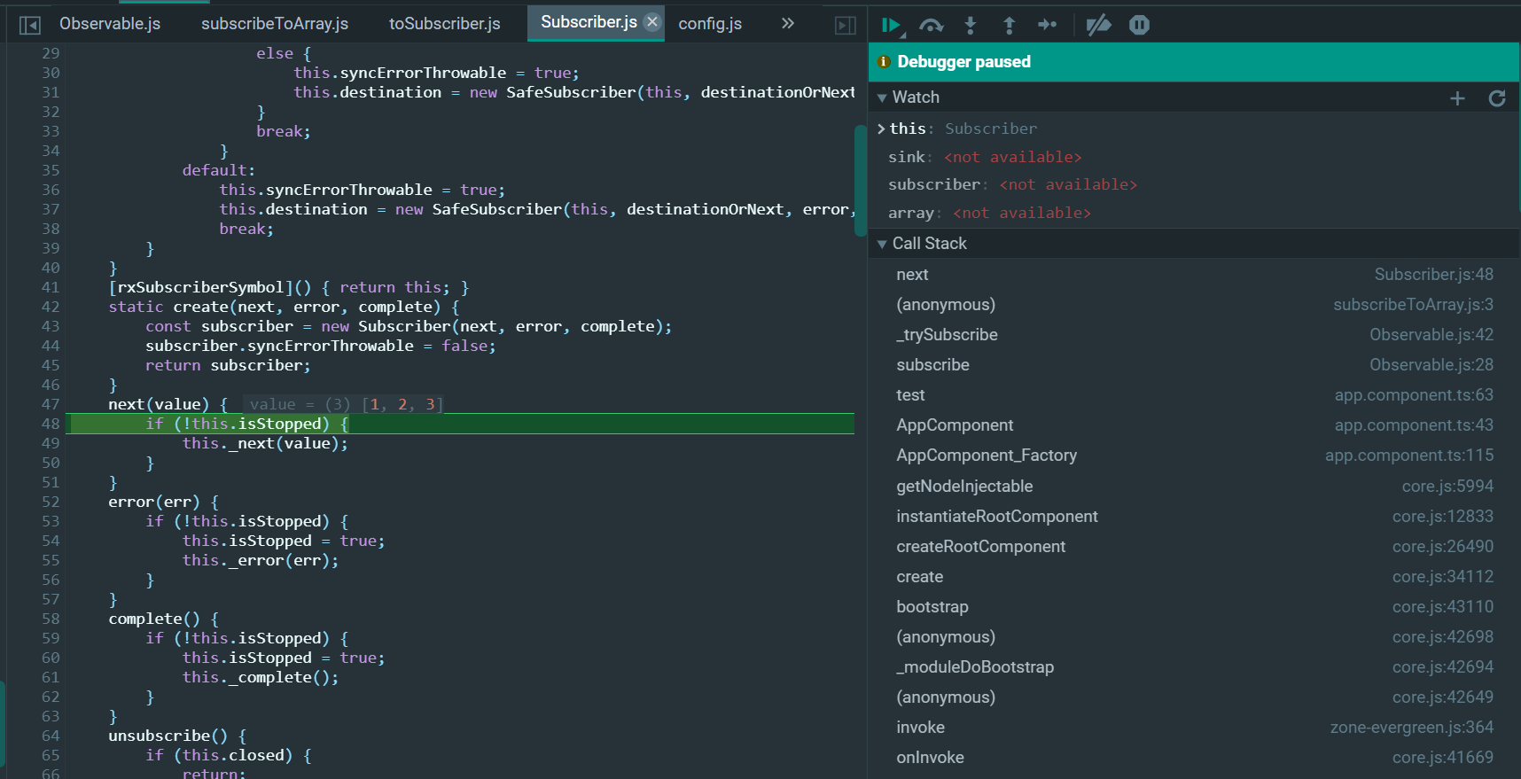 for (let i = 0, len = array.length; i < len && !subscriber.closed; i++) {