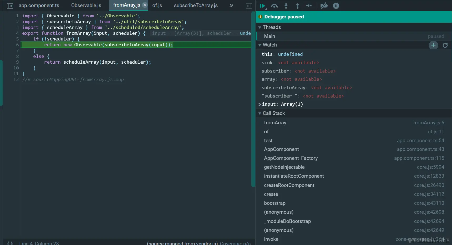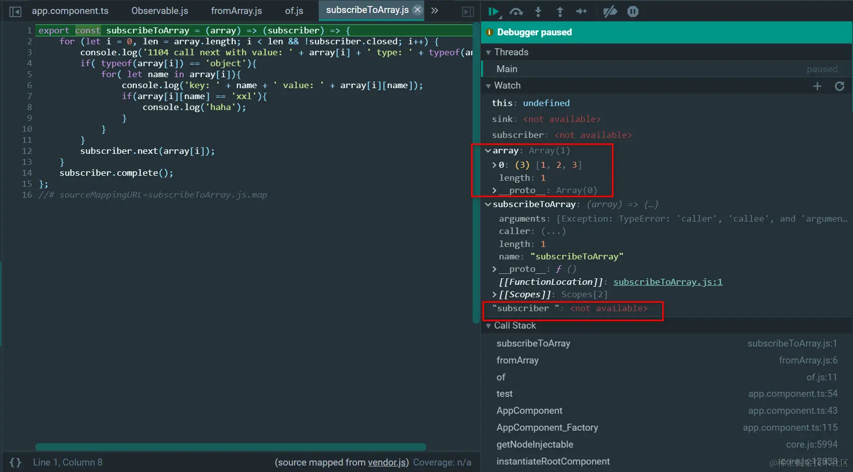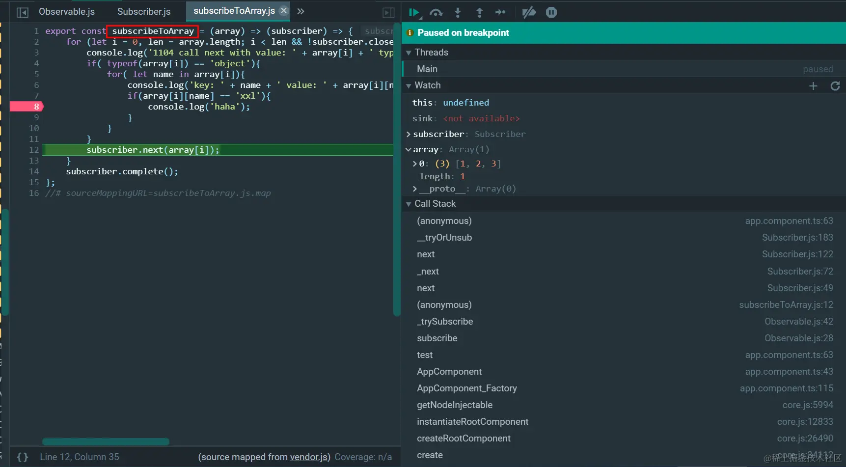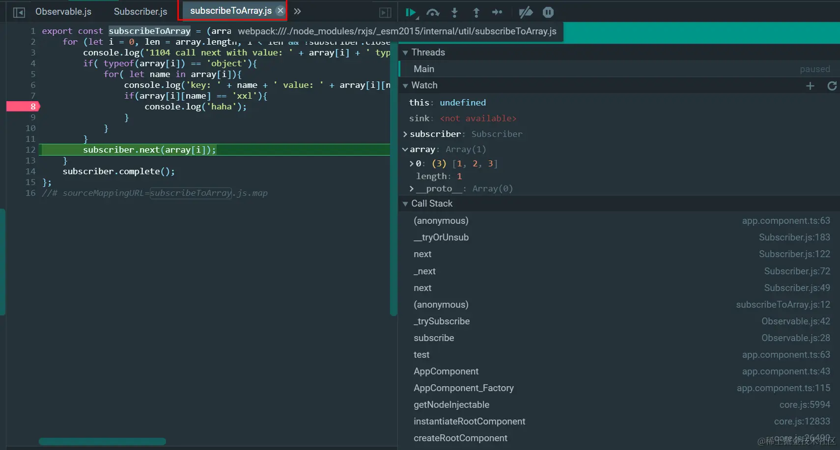调用上下文,只有一个参数input传给了subscribeToArray:
