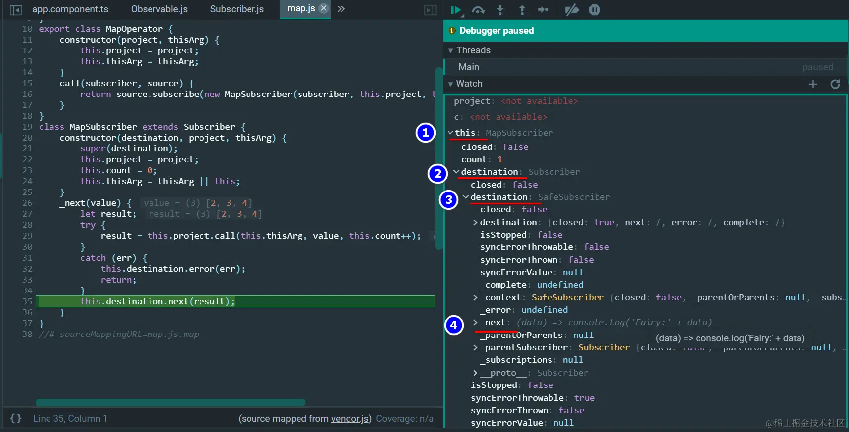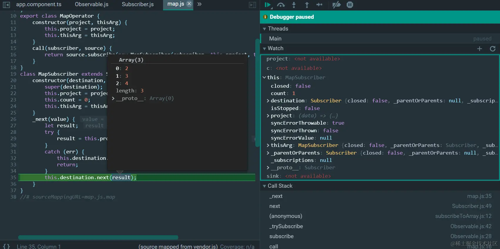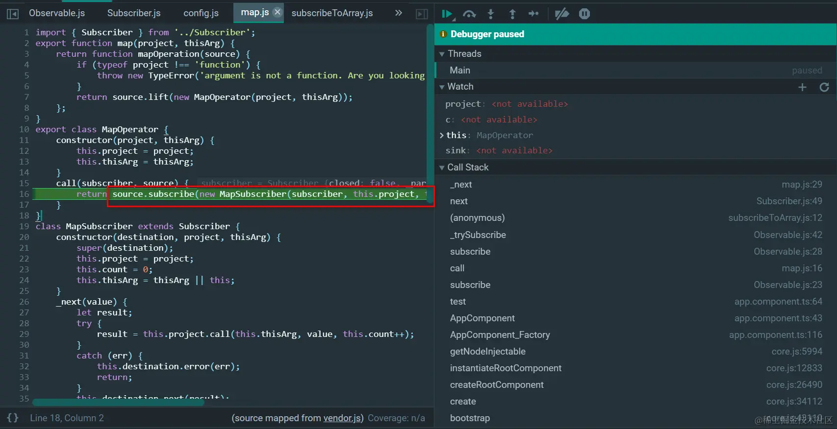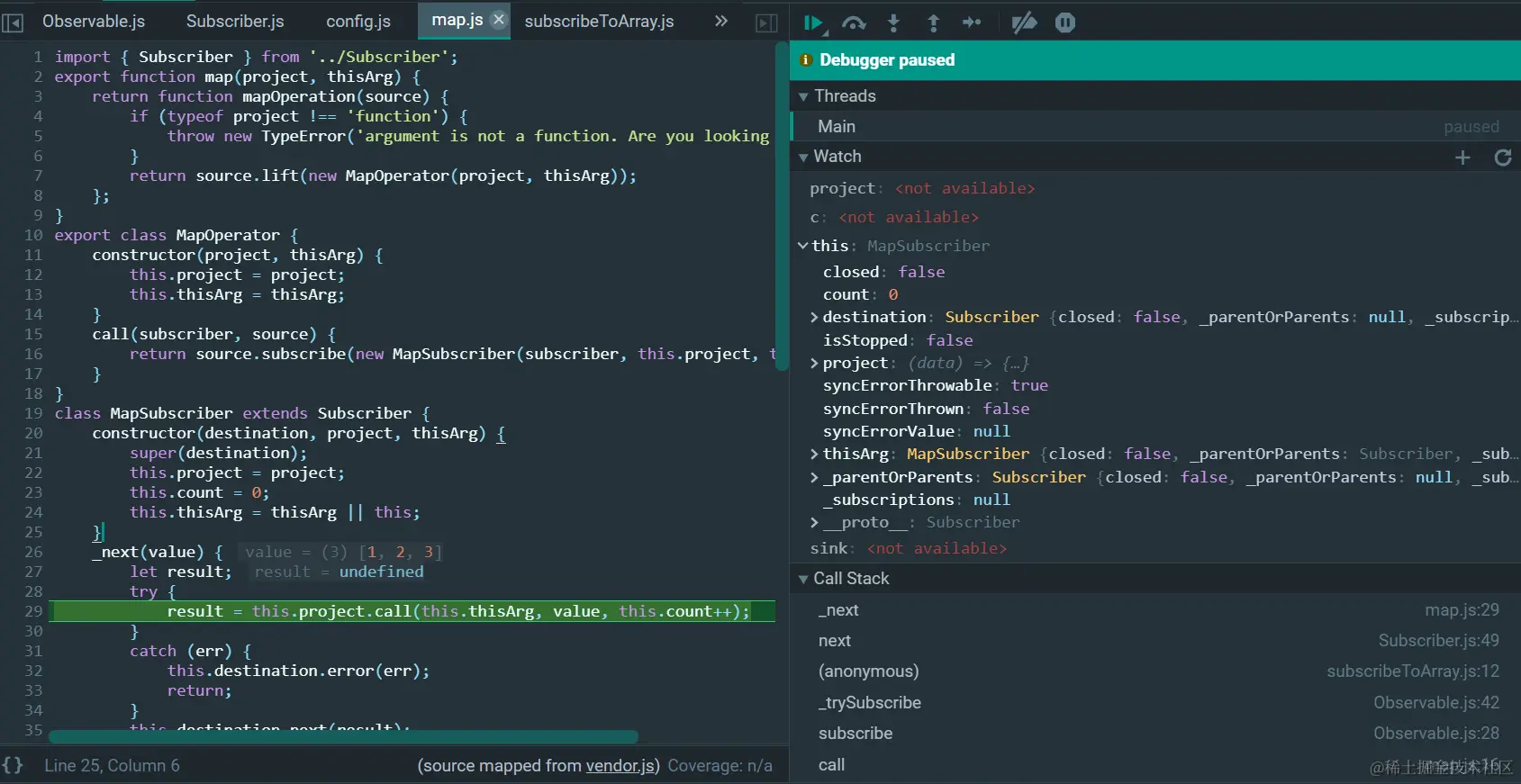所以,在Mapsubscriber内部,_next的实现就是将传入的value用project去调用: