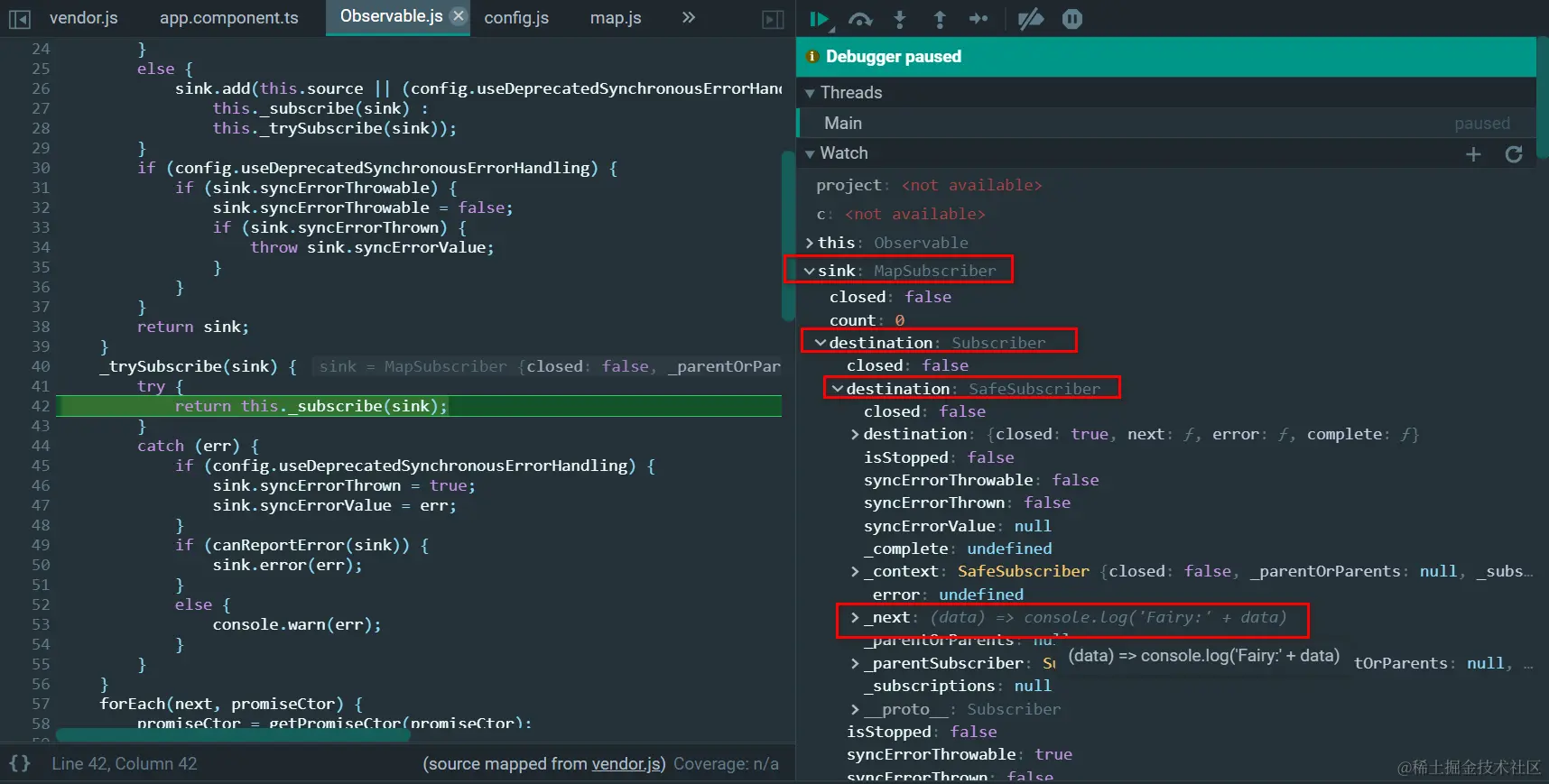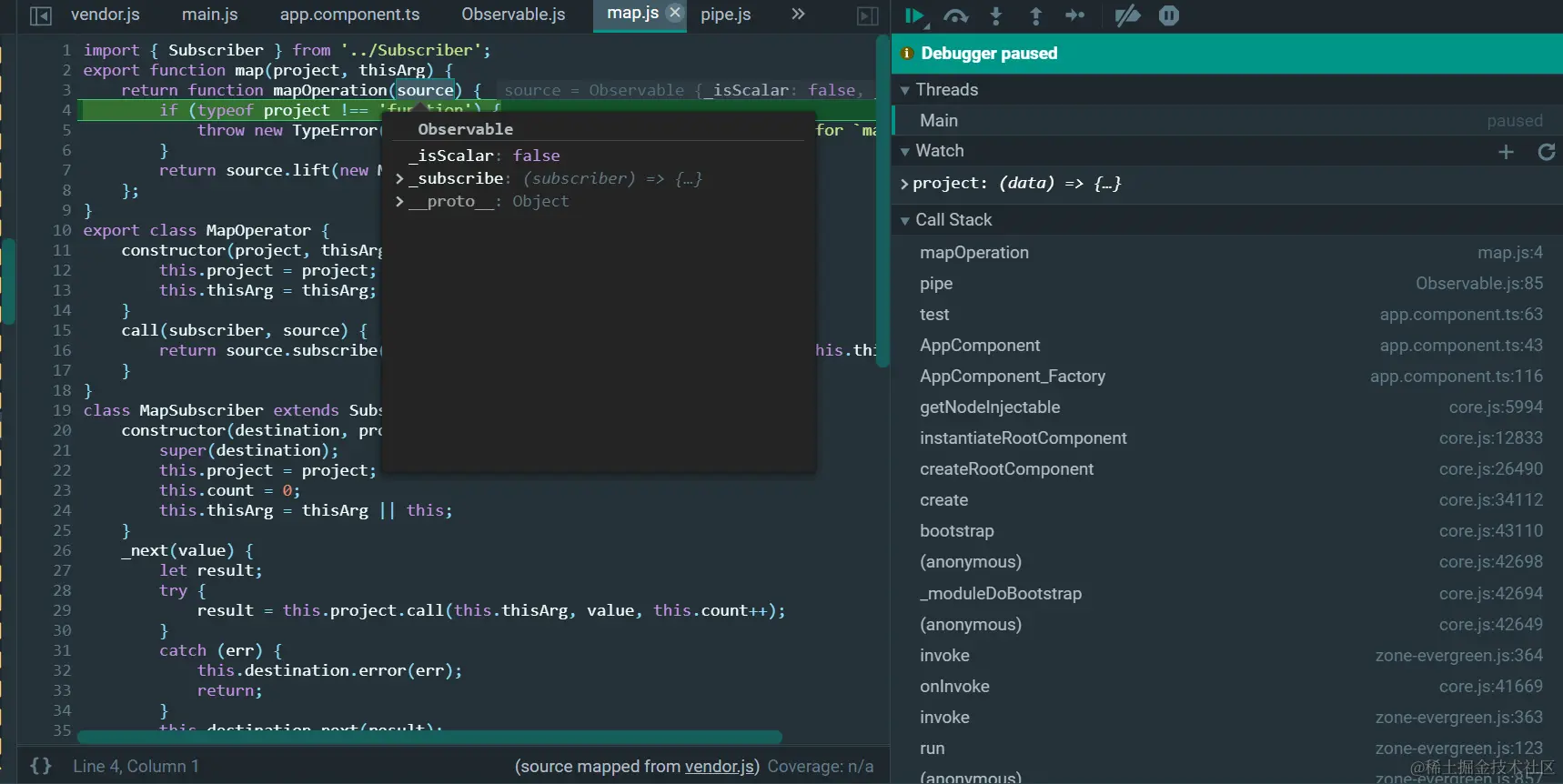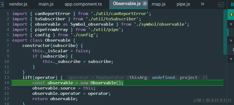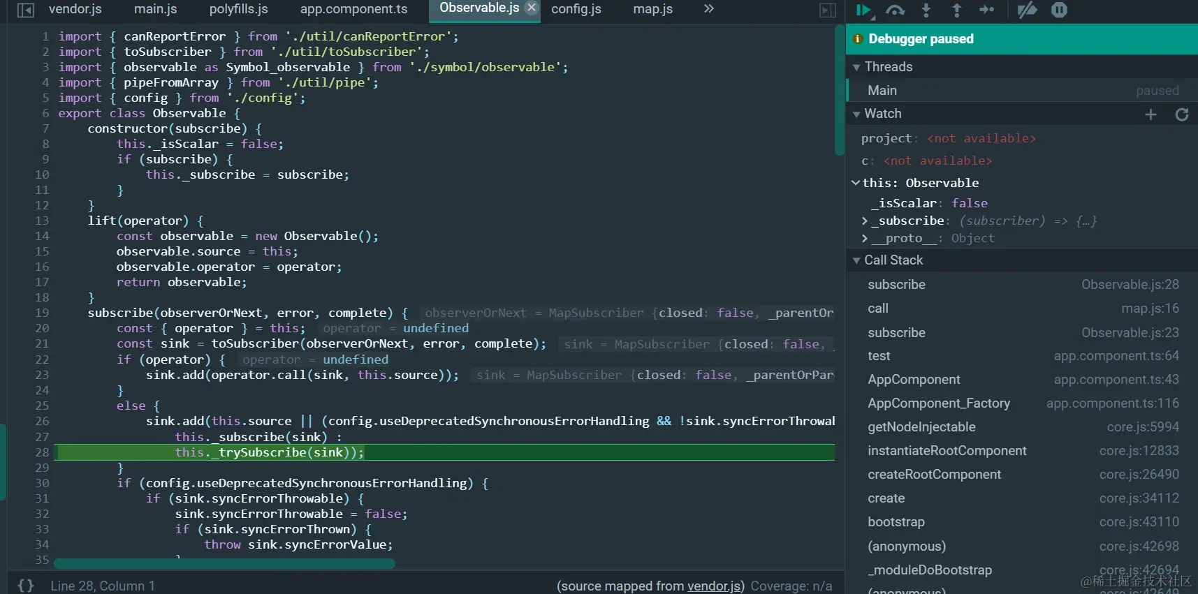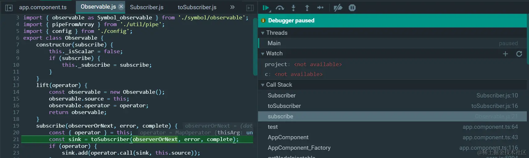 注意,此时我们执行subscribe的Observable对象,实际上是pipe操作返回的新Observable: